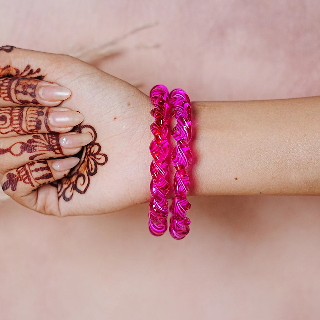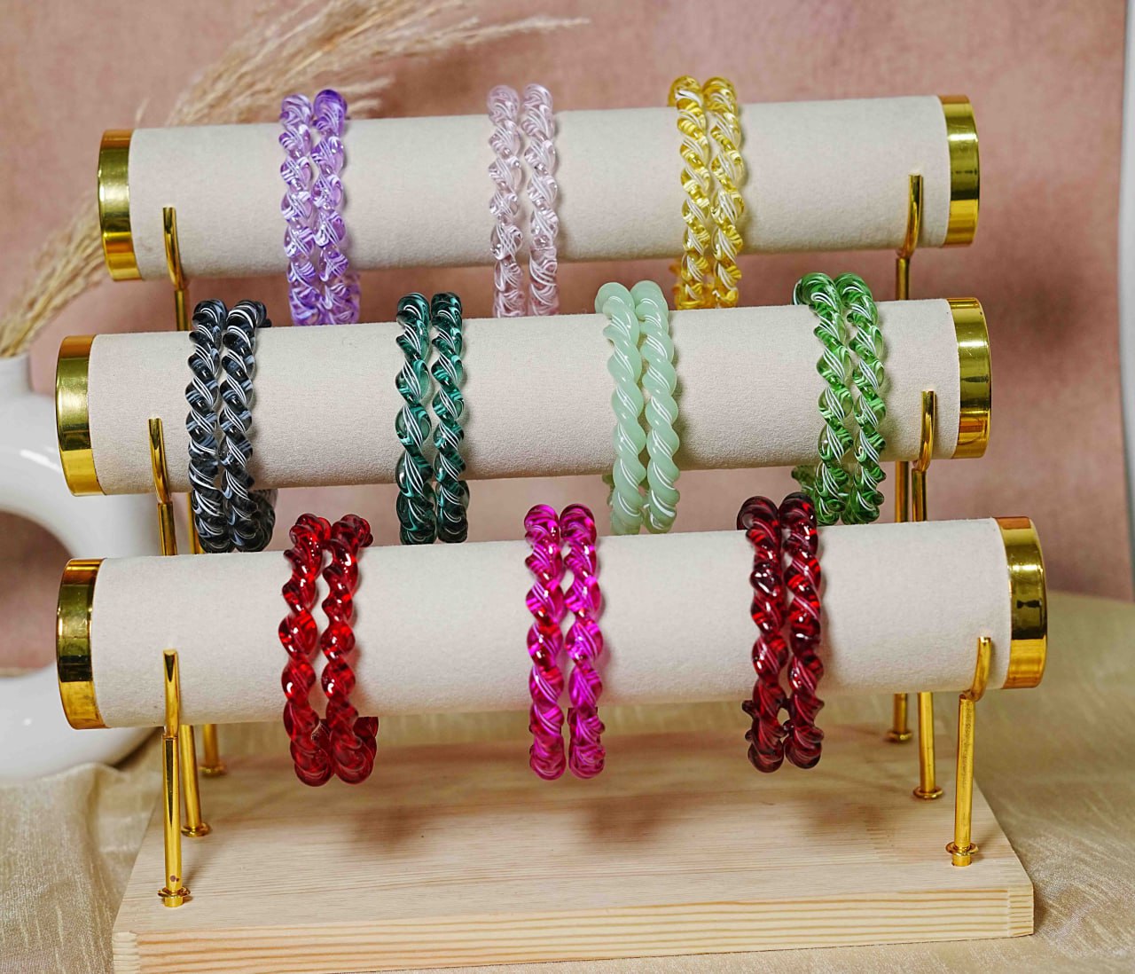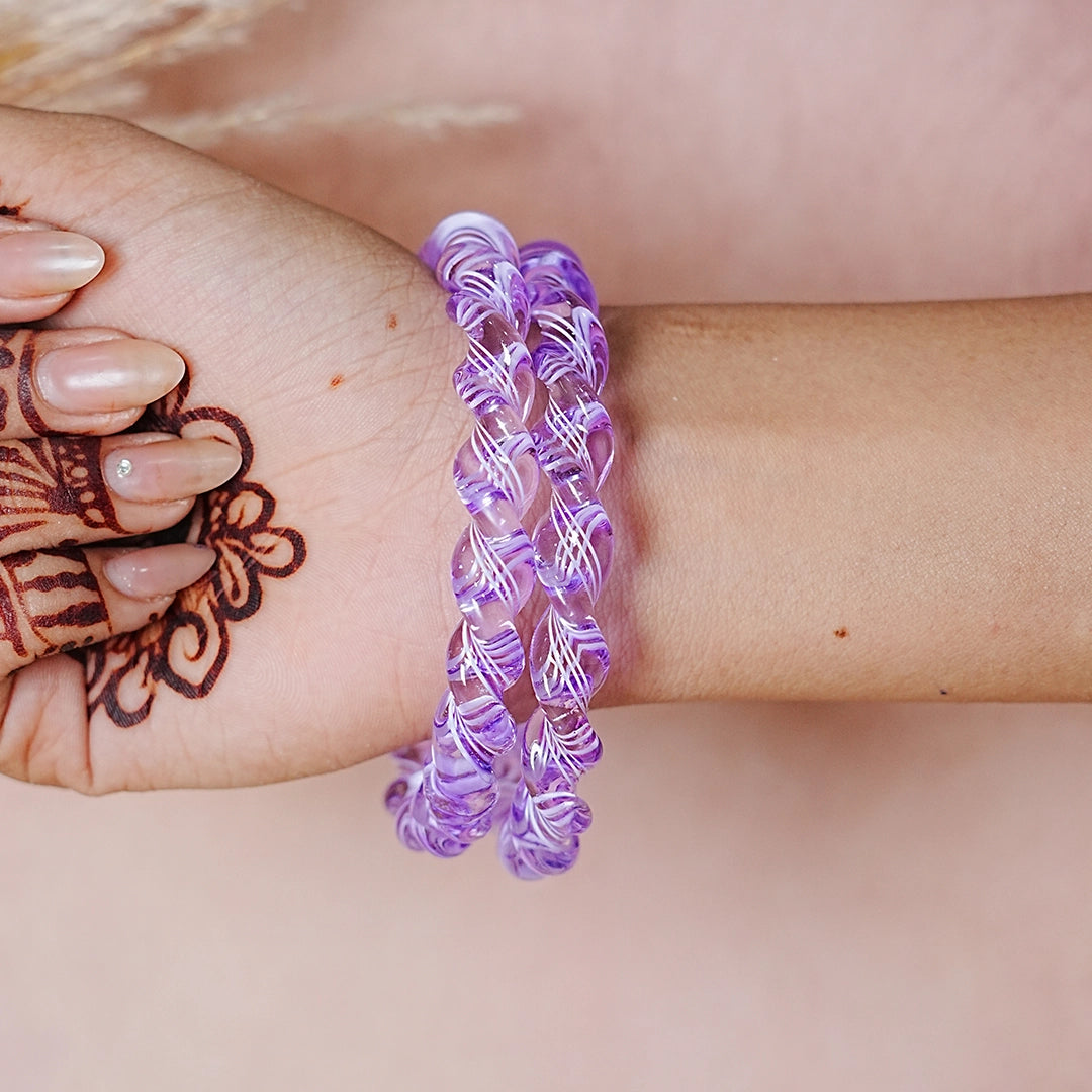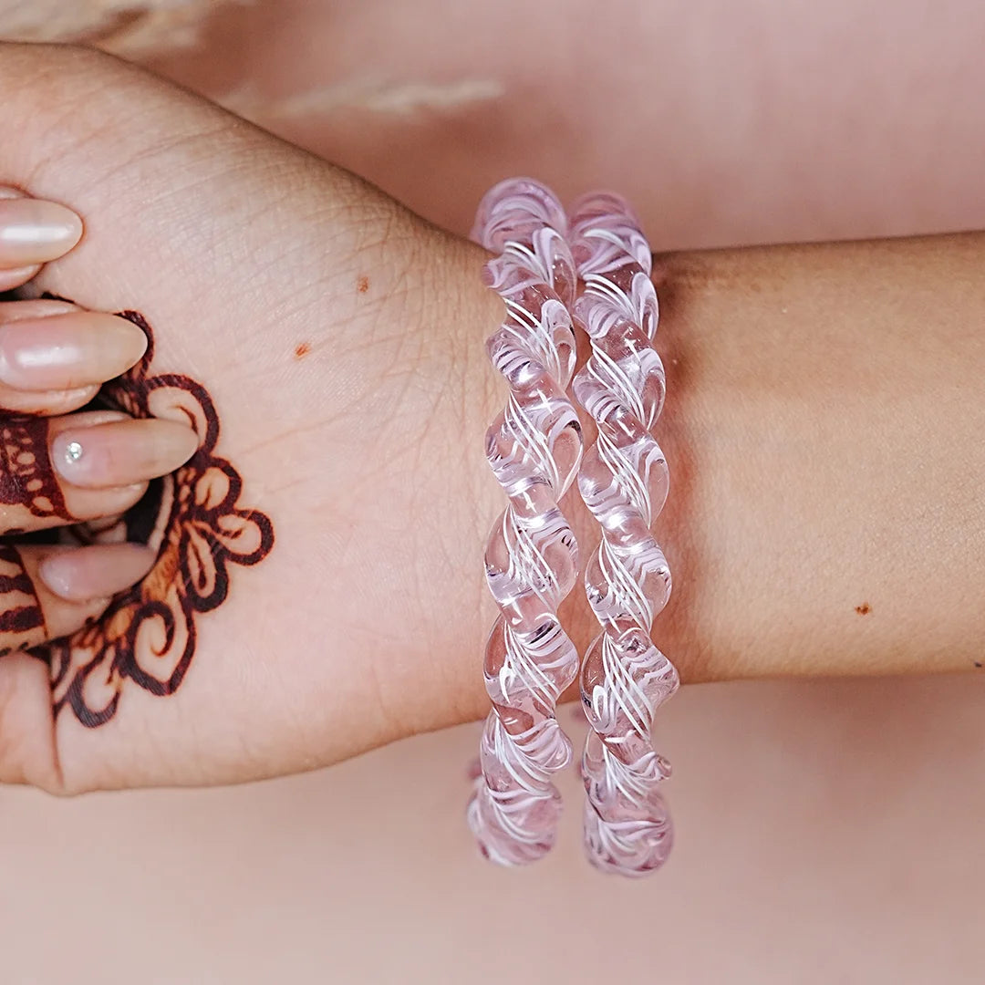 Glossy Finish Spiral Look Glass Kada Bangle for Women & Girls (Pack of 2)