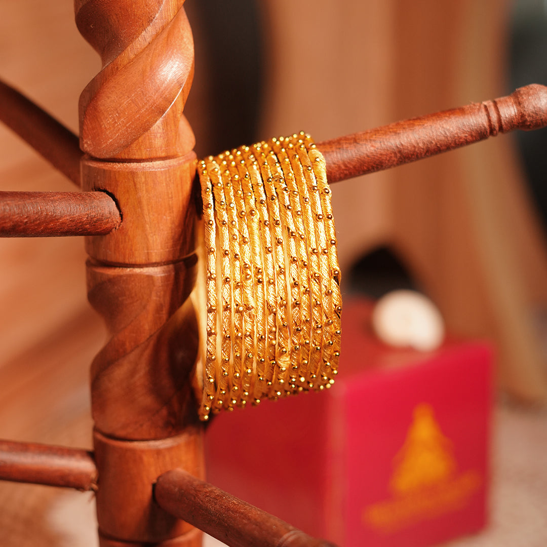 Golden Color Premium Silk Thread Bangle for Women & Girls (Pack of 12)