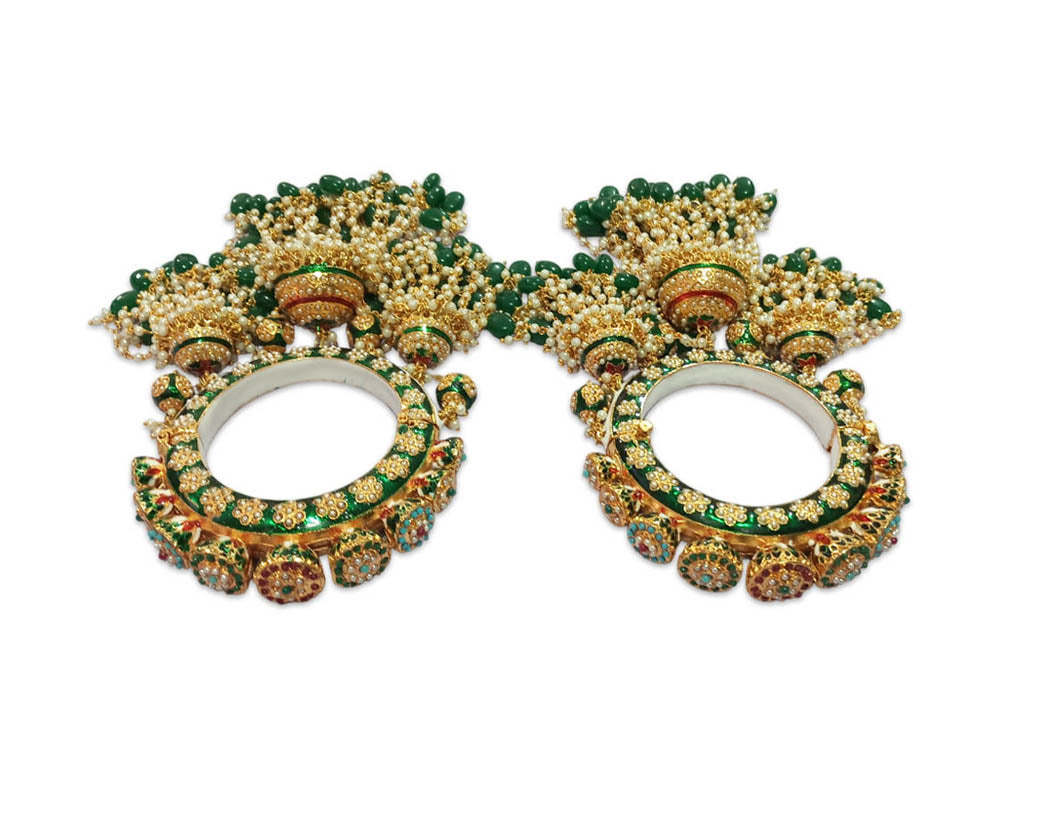 Green Color Latkan Stylish Rajwadi Kada for Bridal, Traditional Jewelry Gold-Plated Kada’s for Wedding & Perfect for Brides