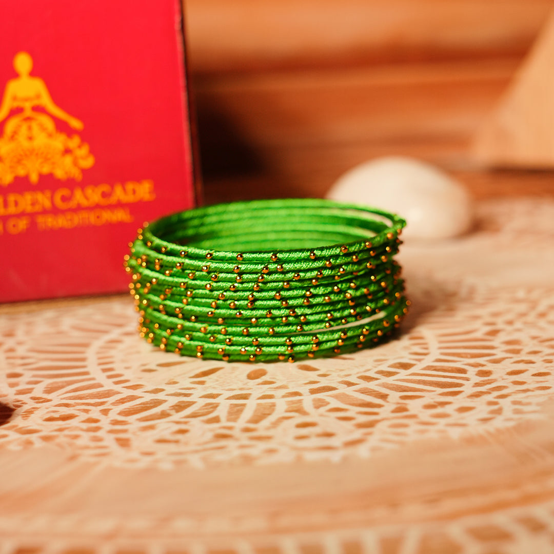 Green Color Premium Silk Thread Bangle for Women & Girls (Pack of 12)