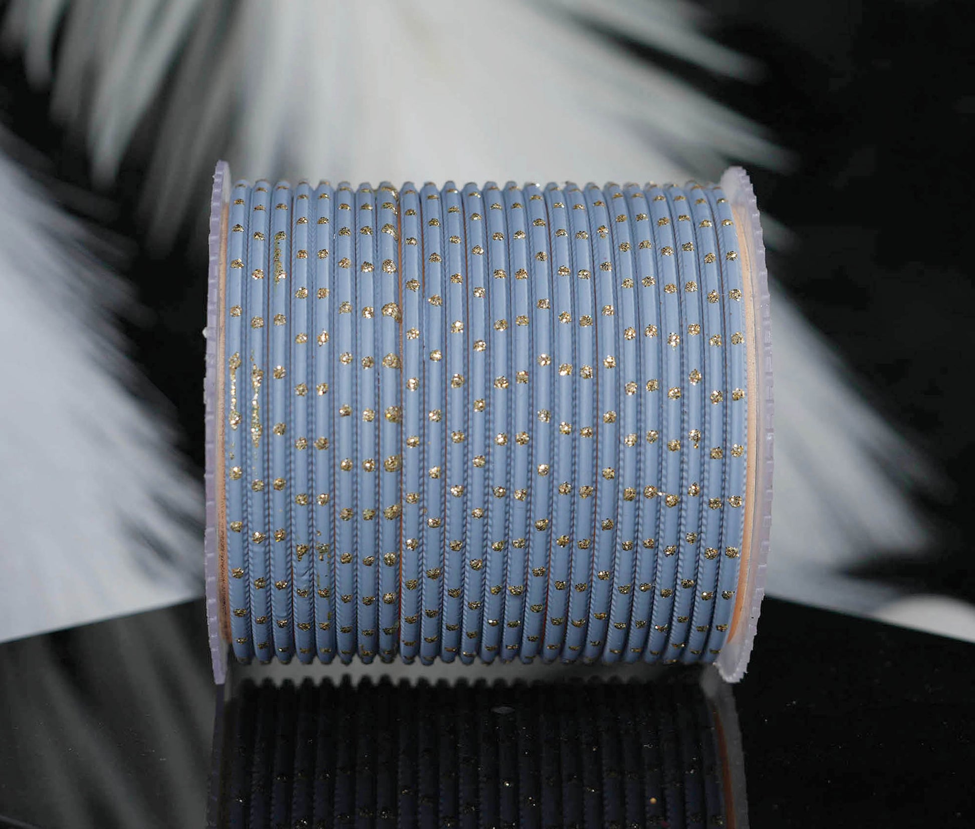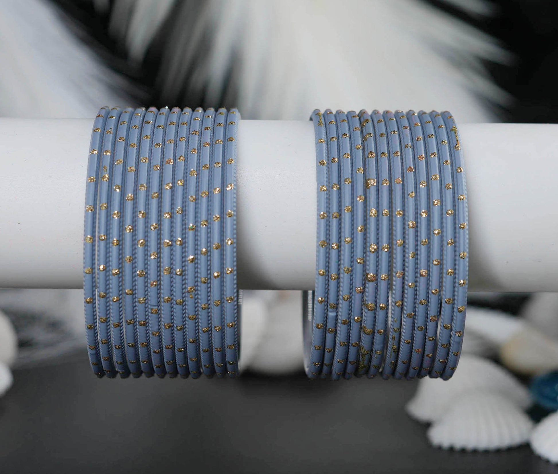 Grey Dot Design Matte Finish Metal Bangle for Women & Girls (Pack of 24)