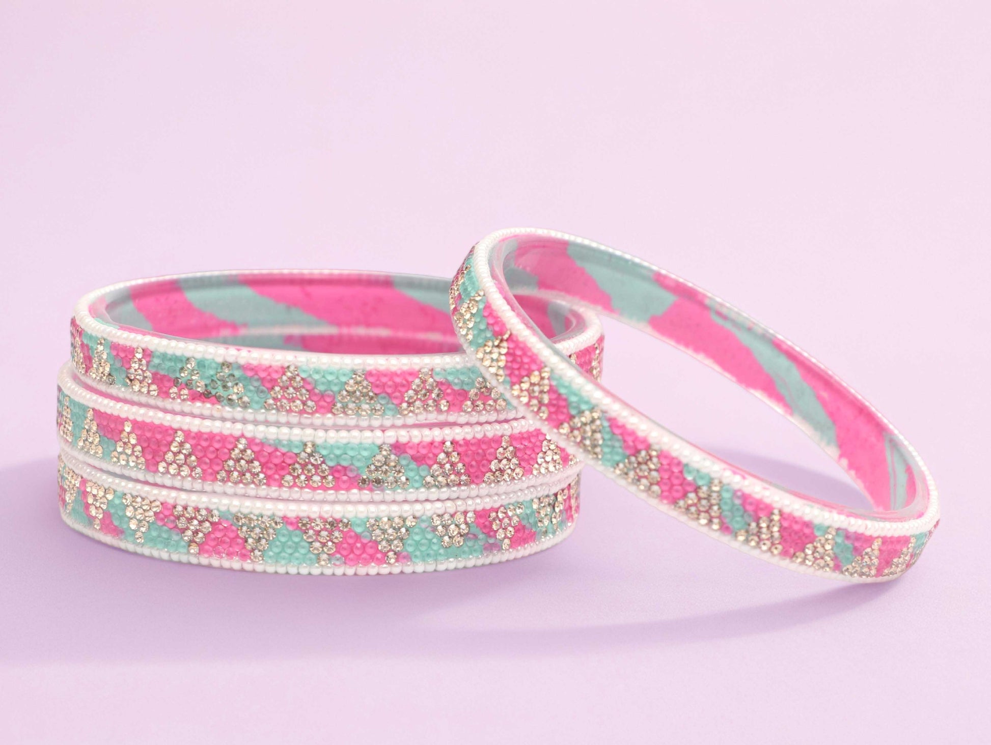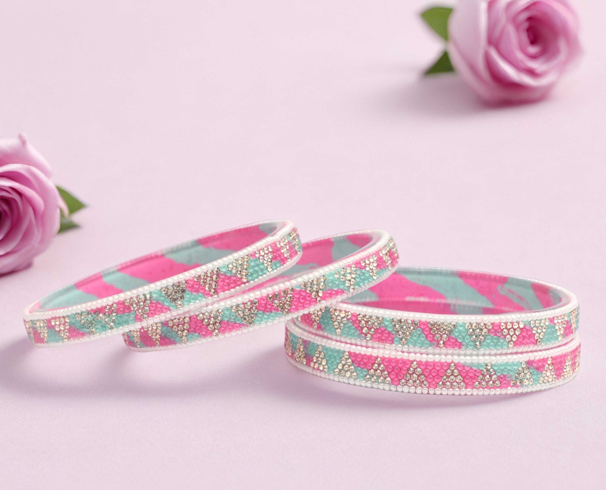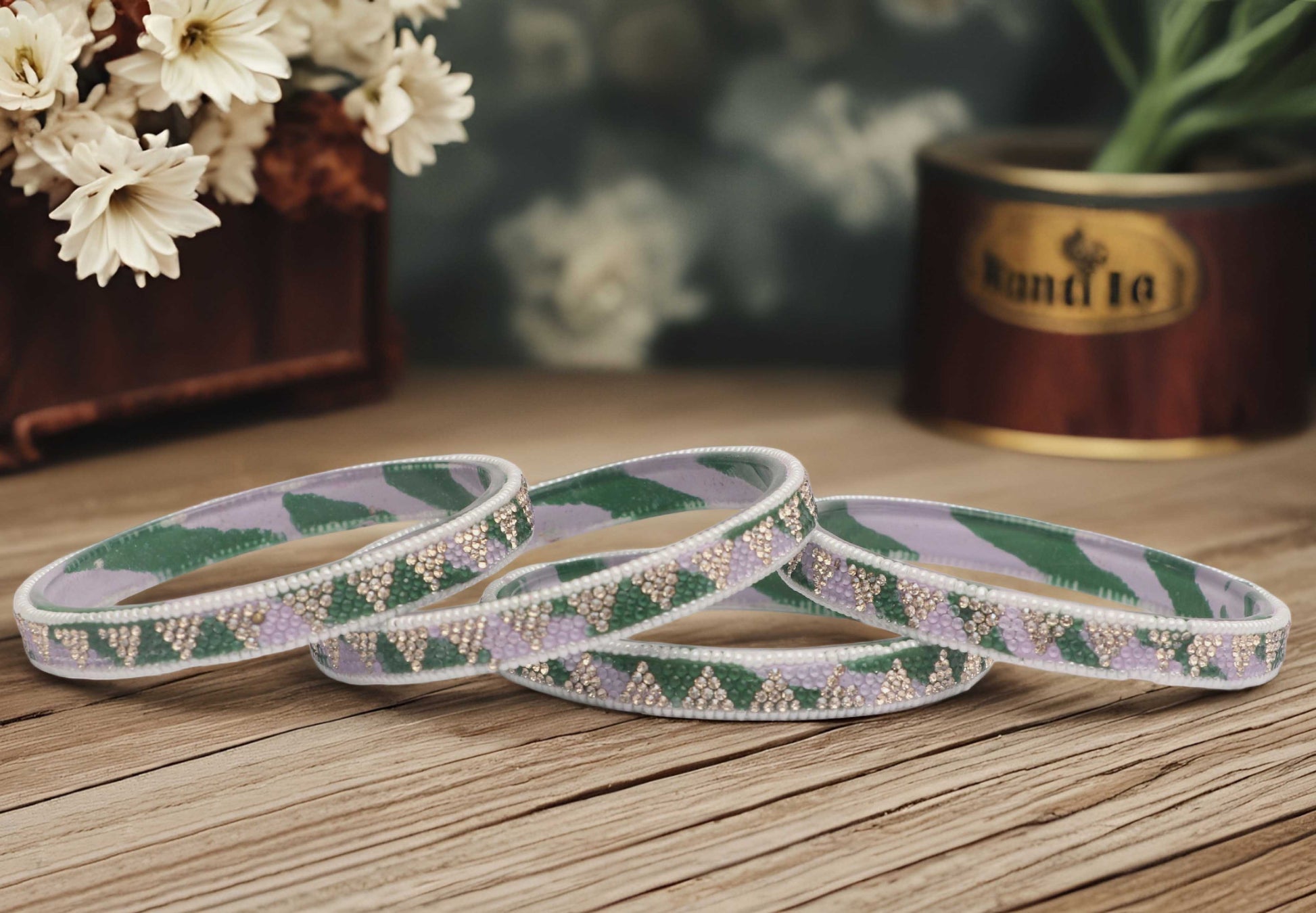Handmade Multicolor Shade Glass Kada for Women & Girls (Pack of 4)