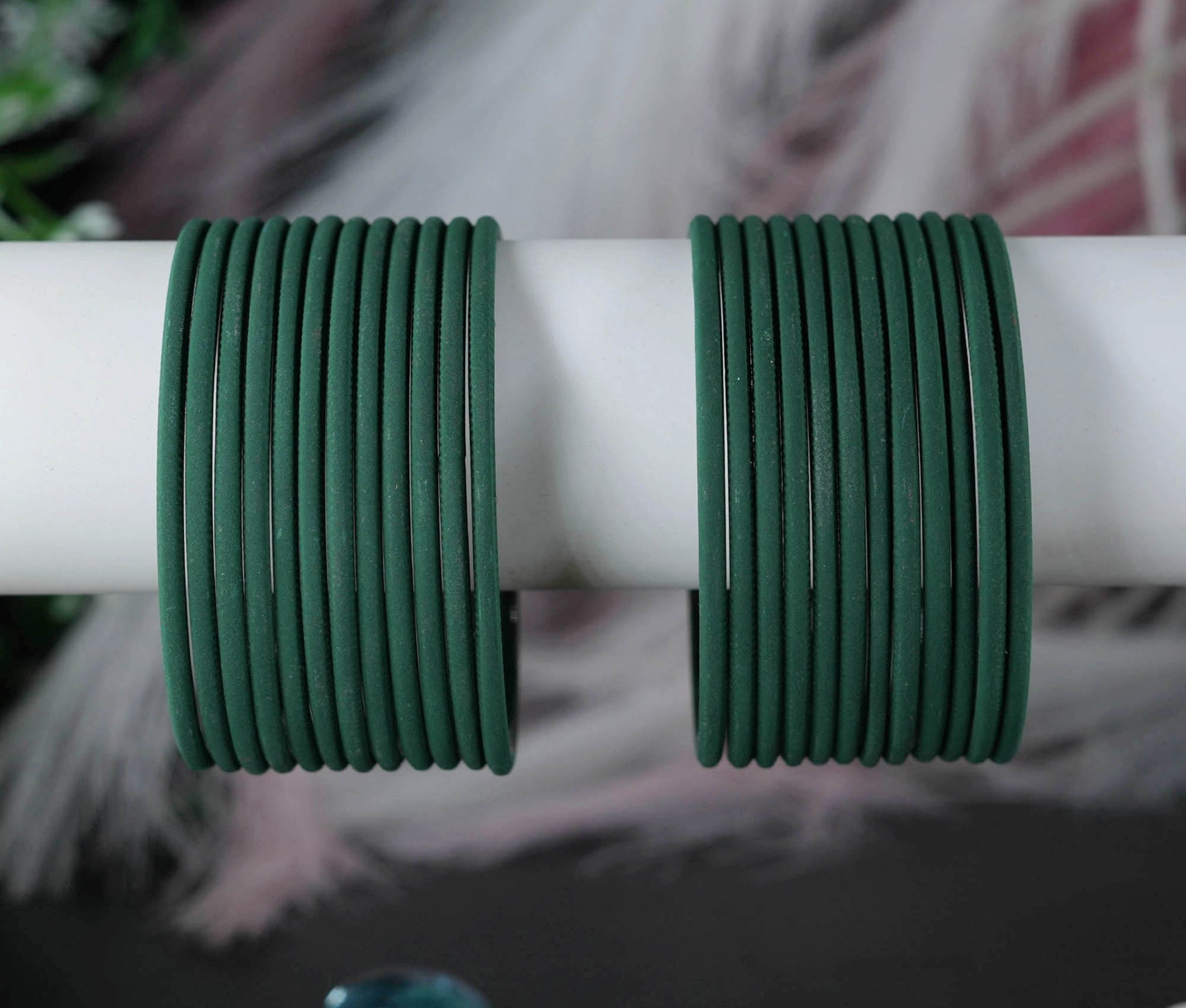 Dark Green Color Plain Matte Metal Bangles for Women & Girls (Pack of 24)