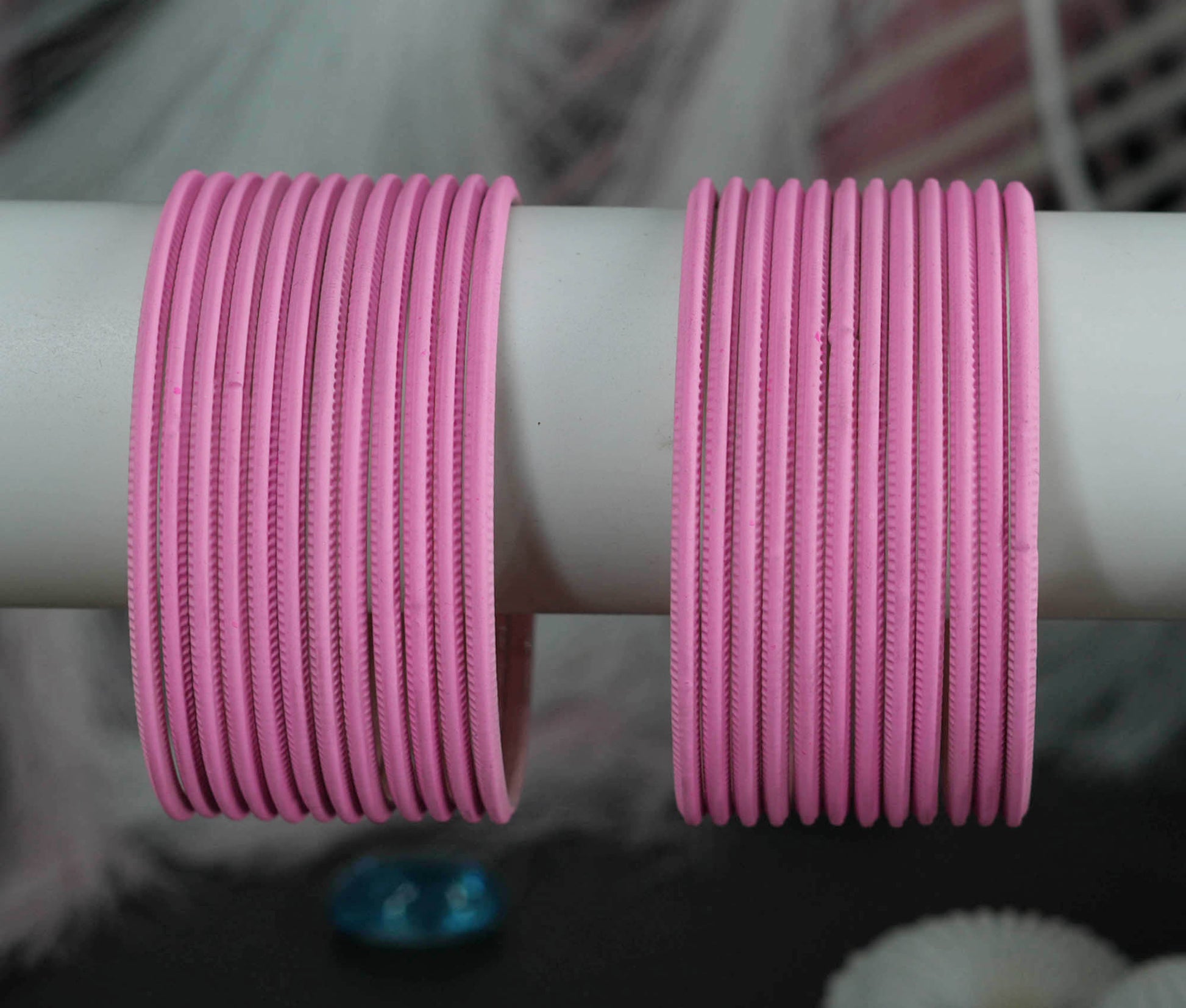 Baby Pink Color Plain Matte Metal Bangles for Women & Girls (Pack of 24)