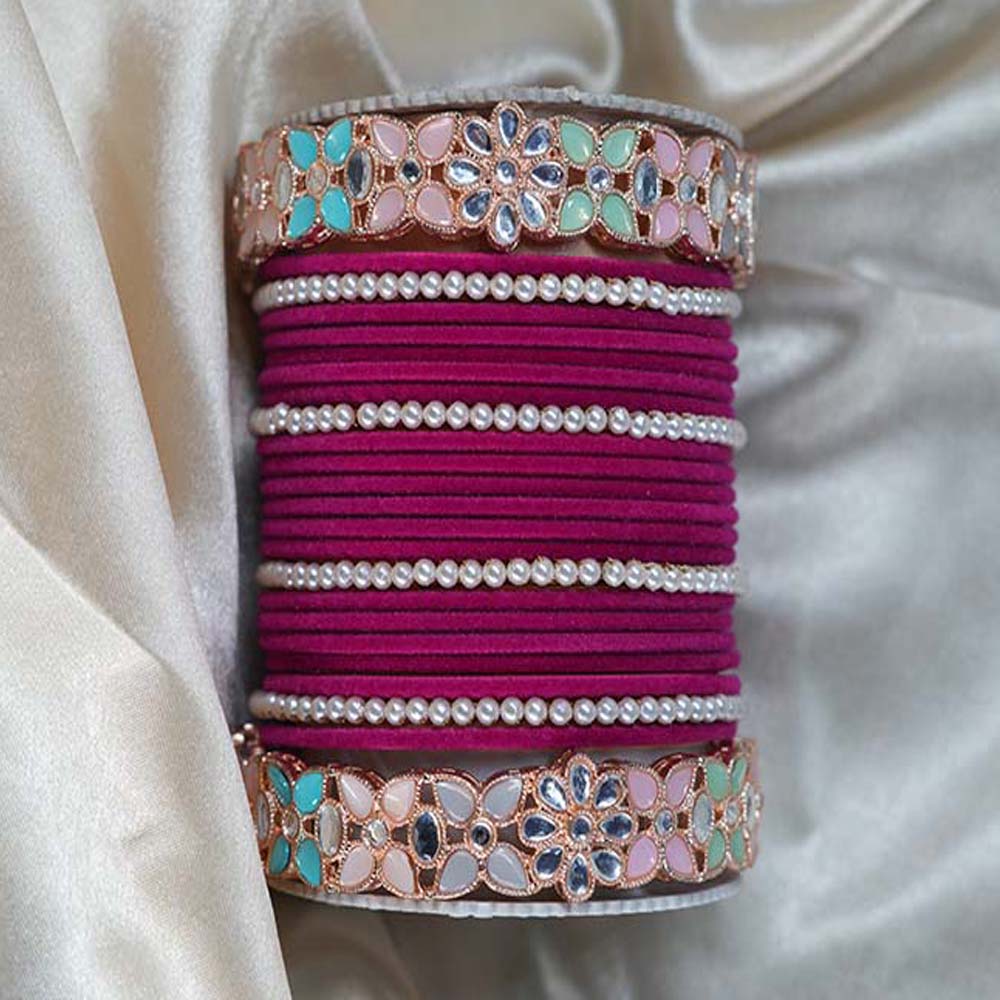 Magenta Color Velvet Metal Bangle Set for Women & Girls