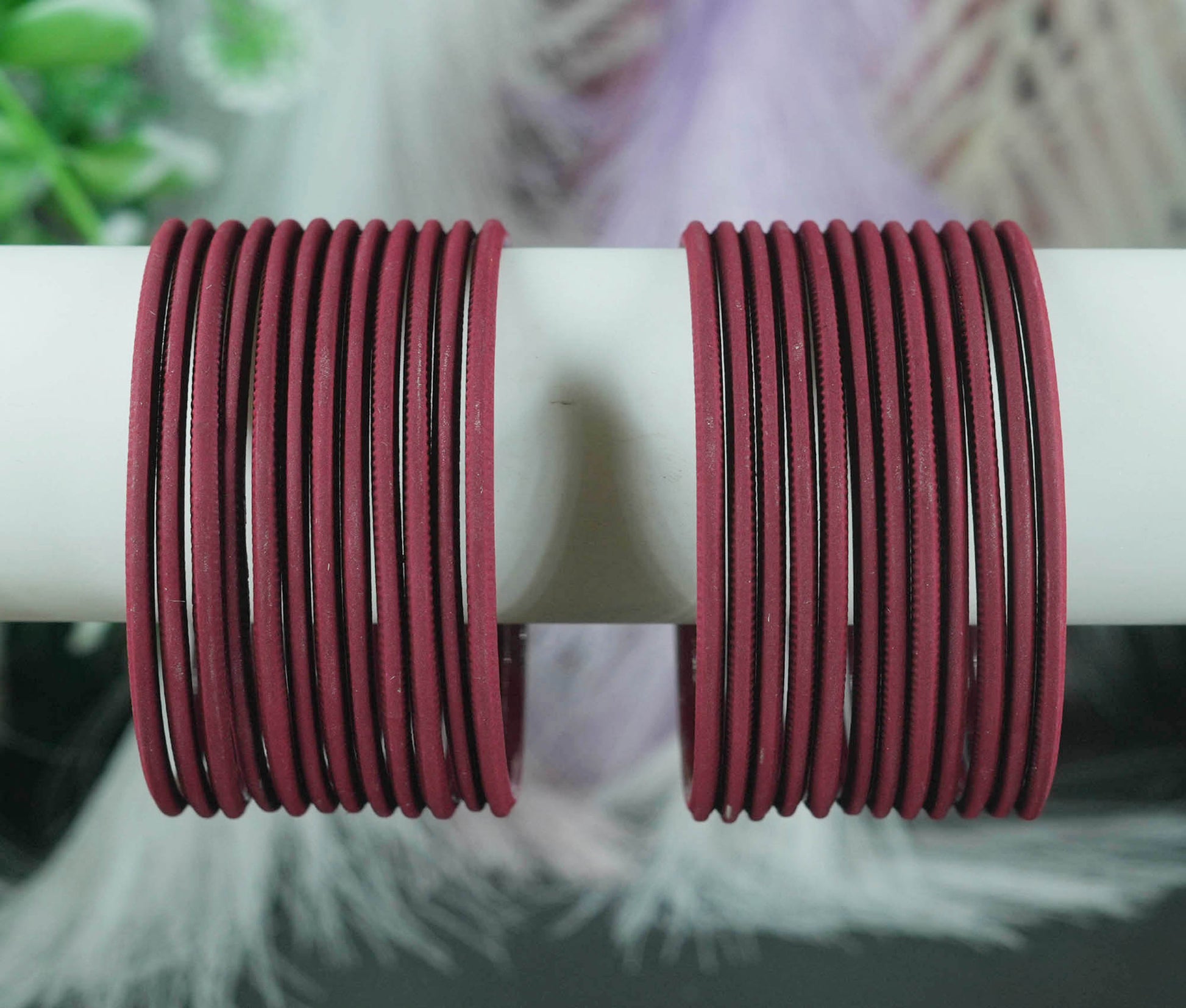 Maroon Color Plain Matte Metal Bangles for Women & Girls (Pack of 24)