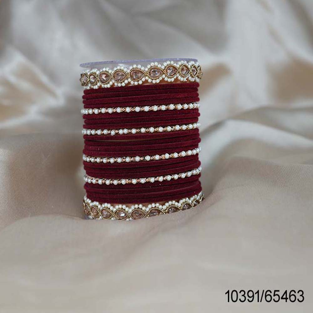 Maroon Velvet Metal Bangle Set for Women & Girls