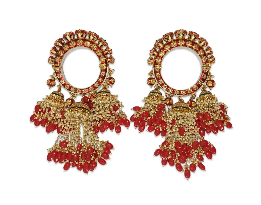 Red Color Latkan Rajwadi Kada for Bridal, Traditional Jewelry Gold-Plated Kada’s for Wedding & Perfect for Brides
