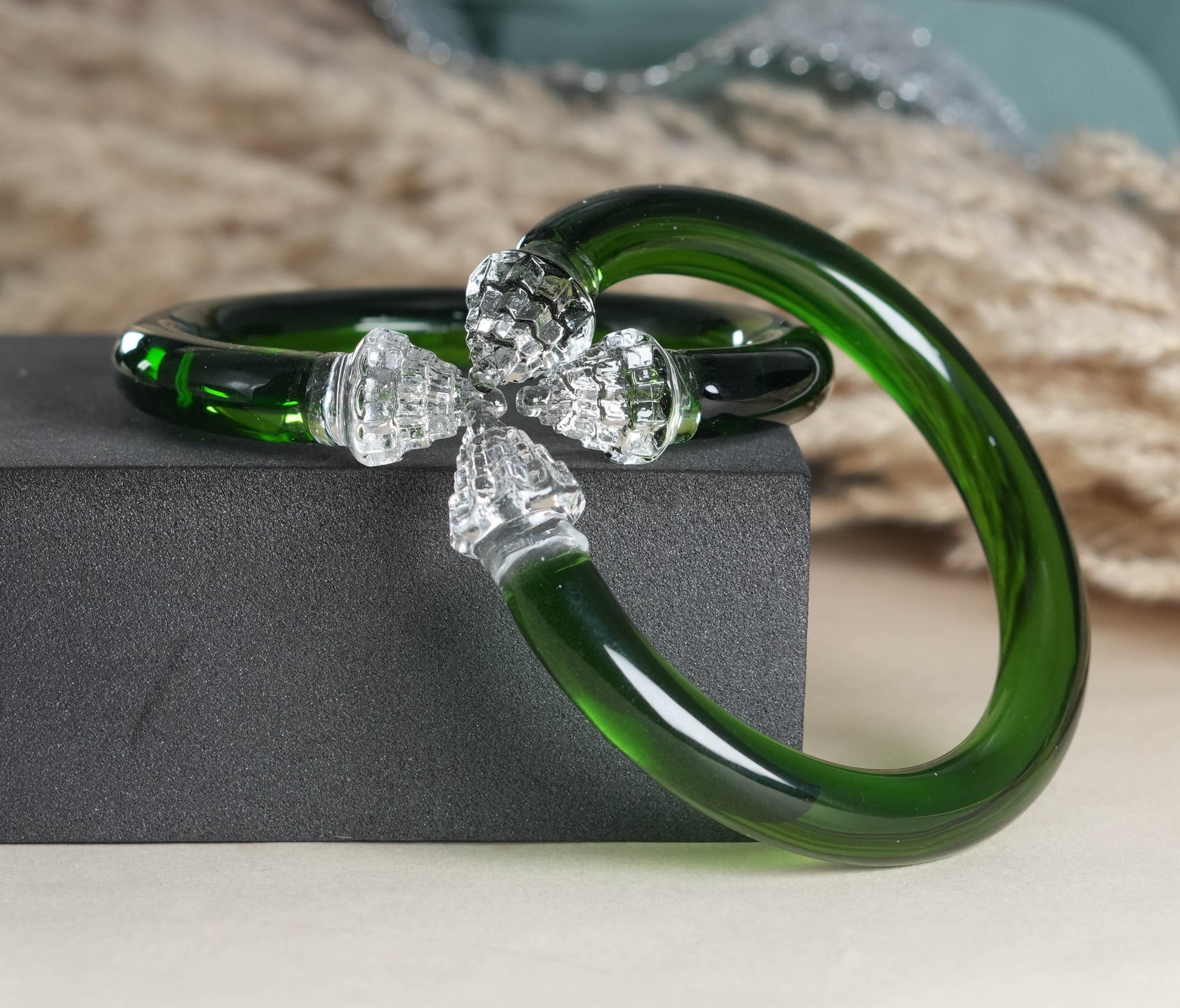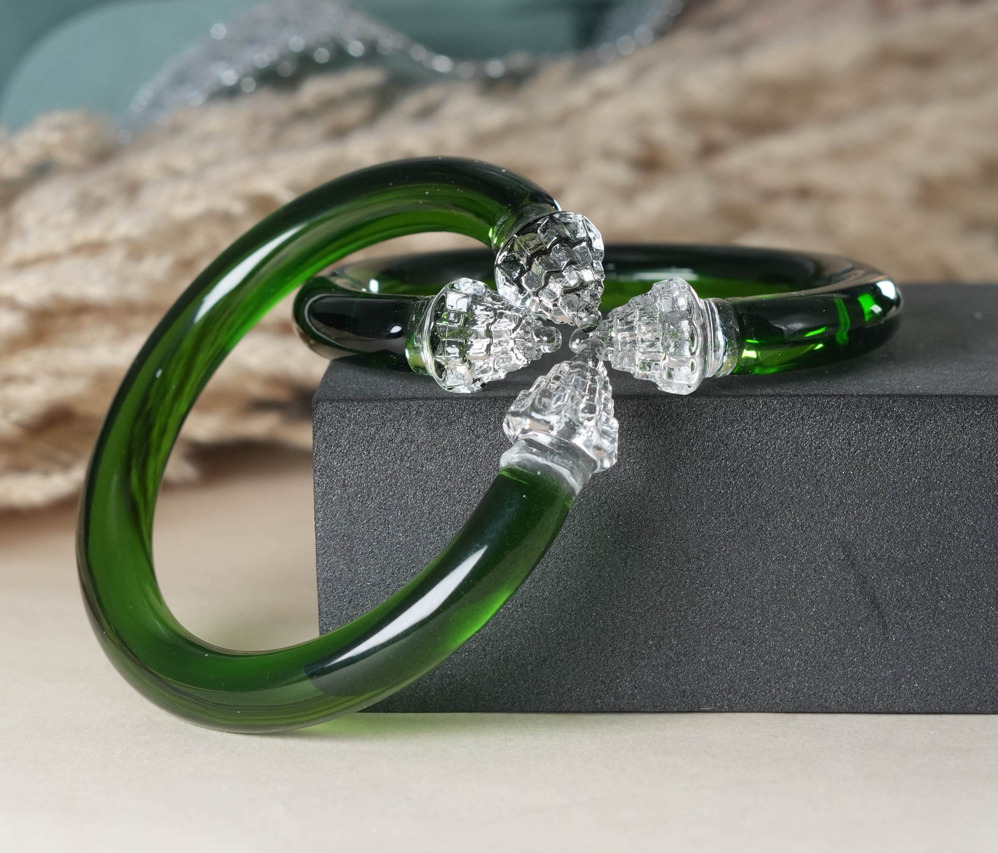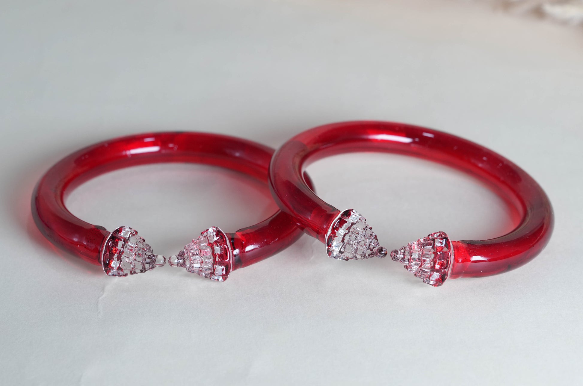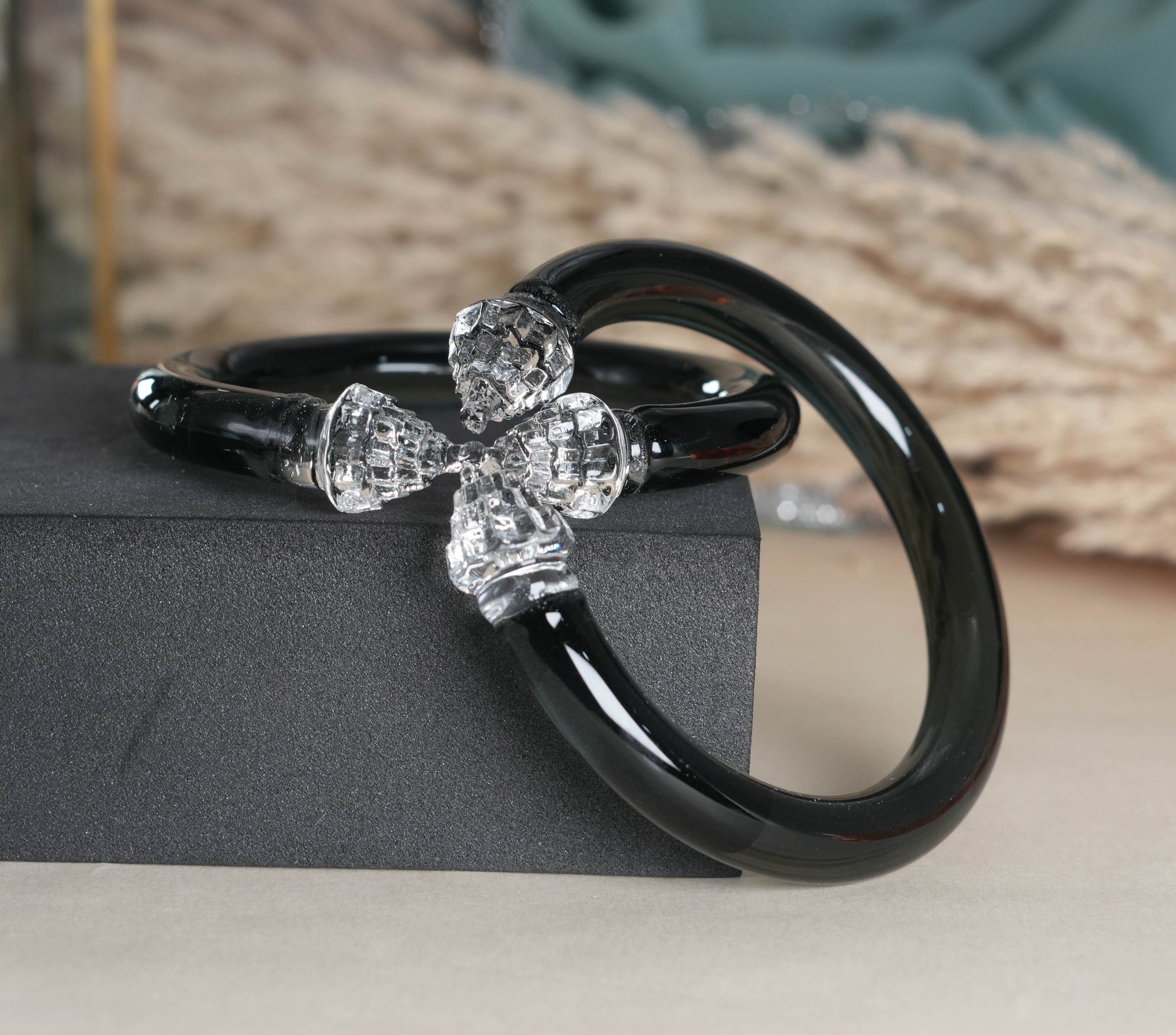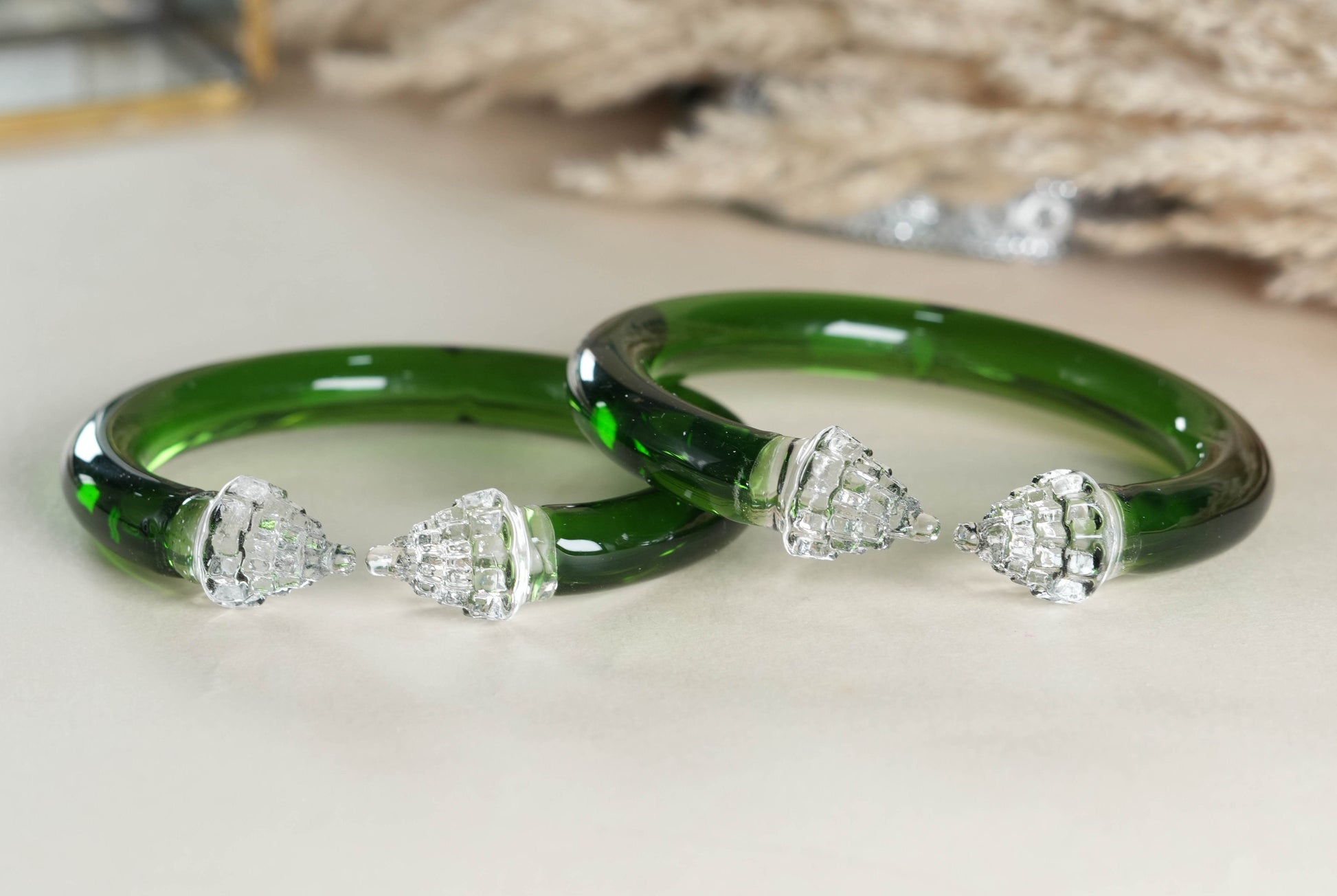 Whether you're dressing up for a special occasion or adding a touch of grace to your daily wear, this versatile glass kada is sure to complement any outfit. Its lightweight and comfortable fit make it perfect for long wear, while the glossy finish adds a radiant shine that will catch everyone's eye.
