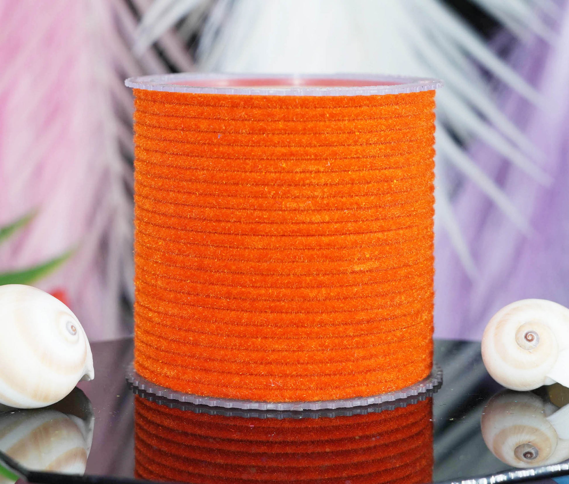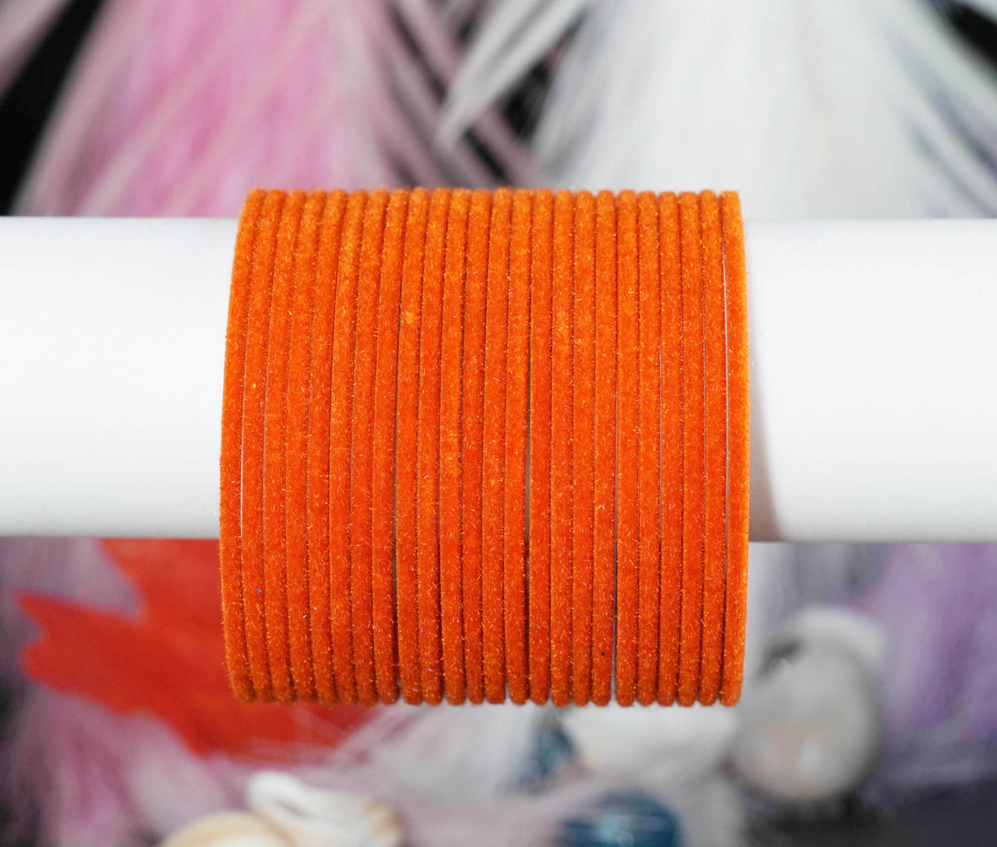 Orange Velvet Metal Bangles for Women & Girls (Pack of 24)