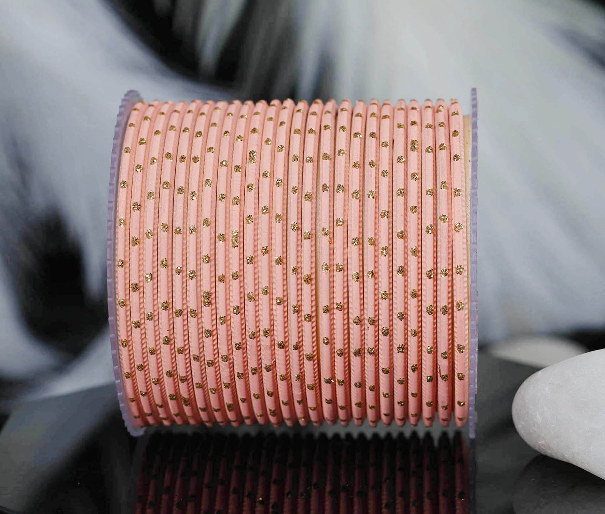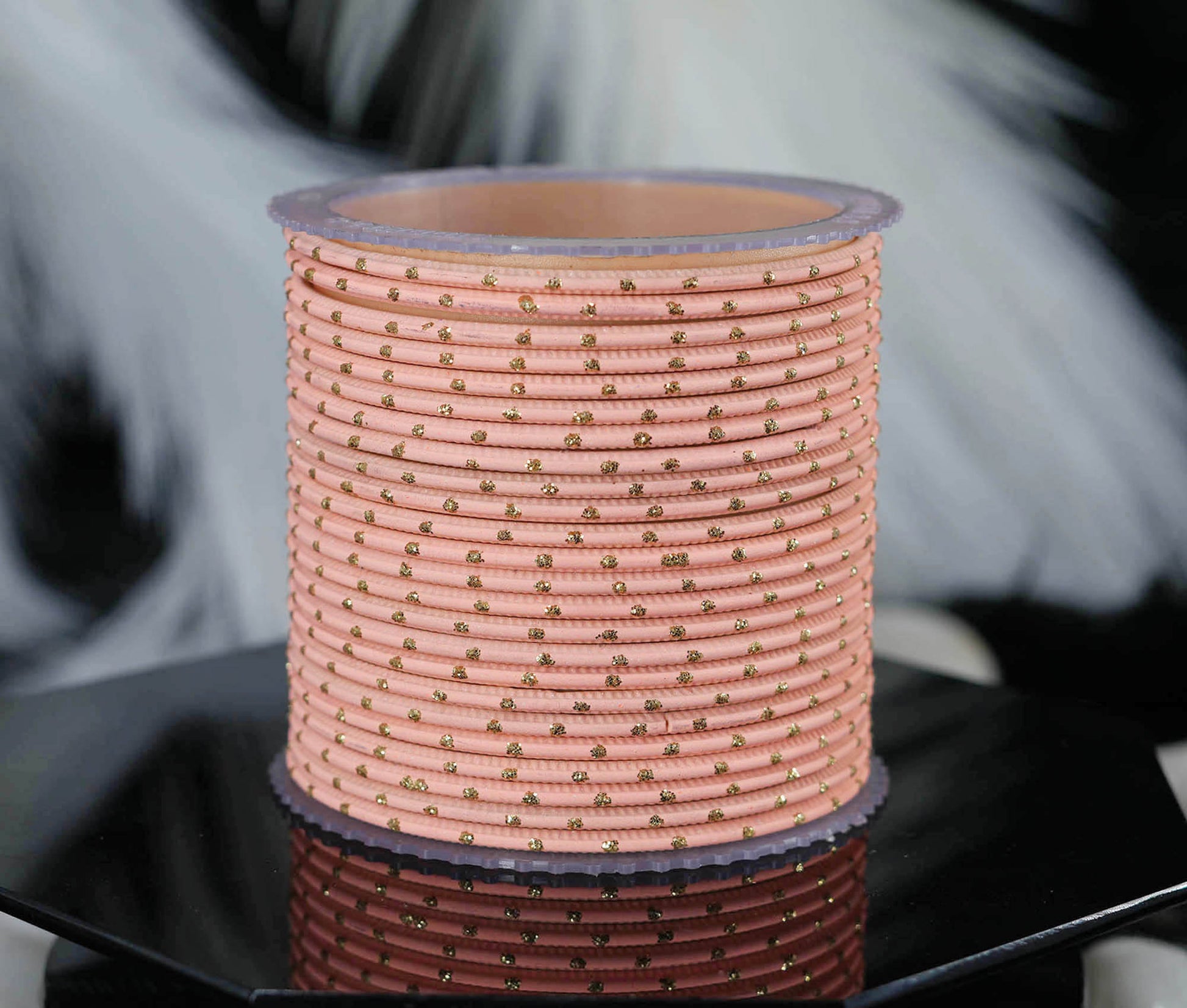Peach Dot Design Matte Finish Metal Bangle for Women & Girls (Pack of 24)
