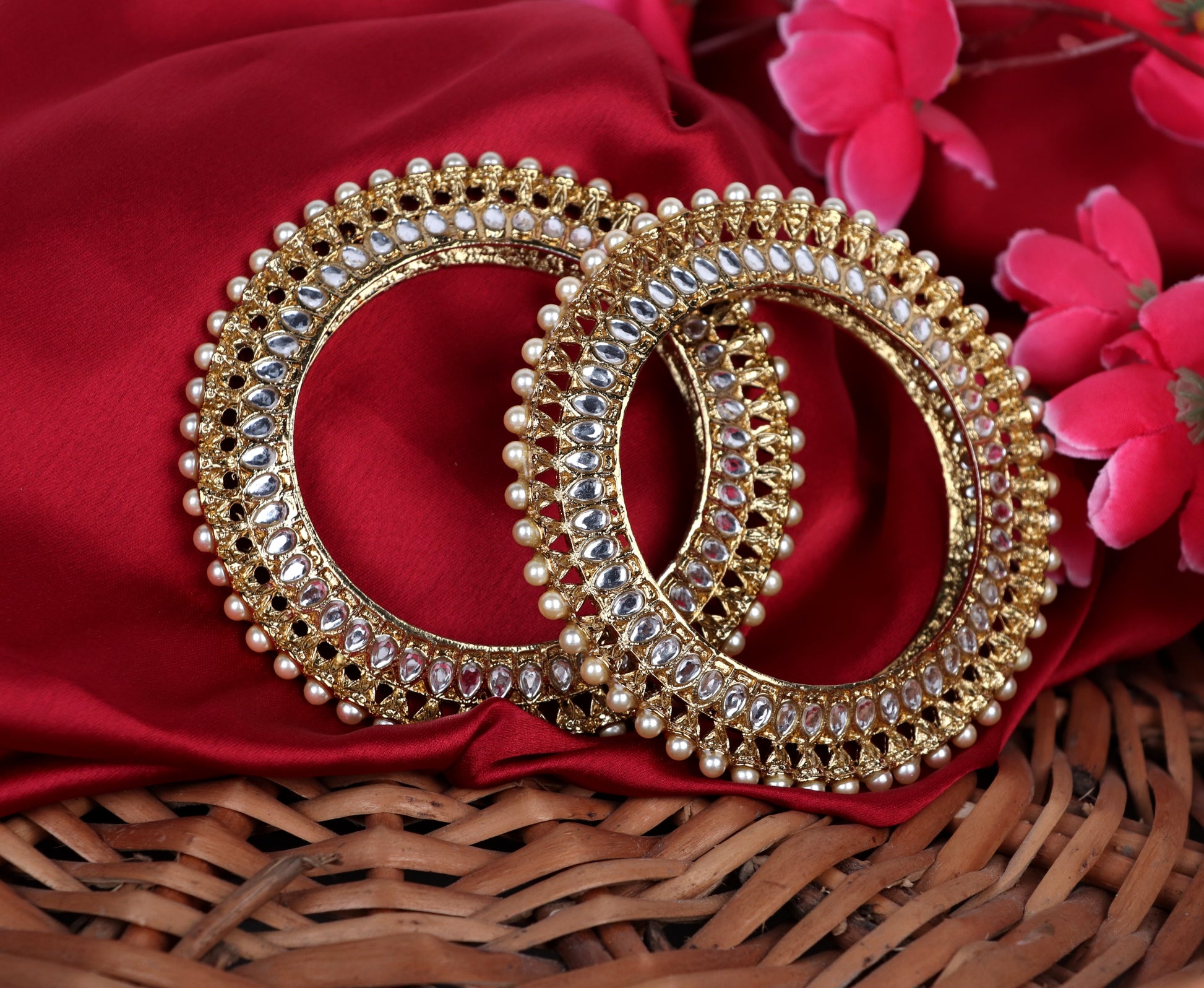 Pearl with Kundan Studded Kada Stylish Gold-Plated Traditional Bangles for Women & Girls