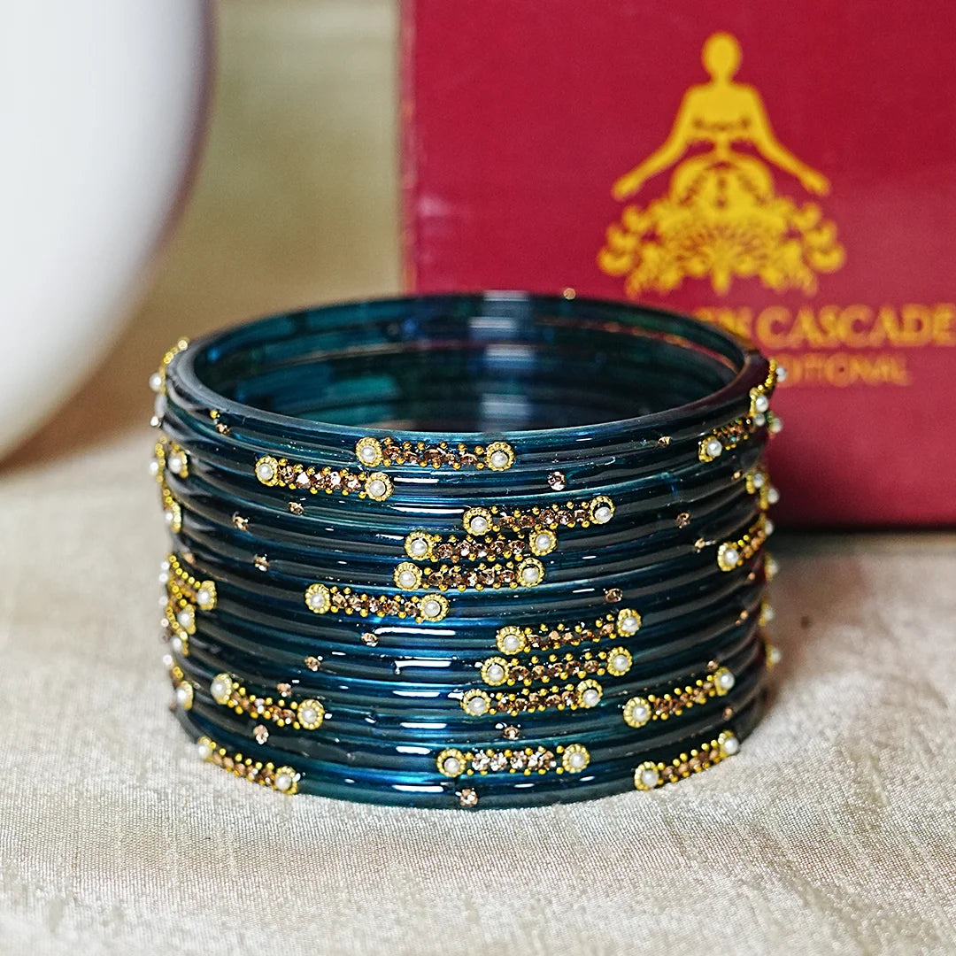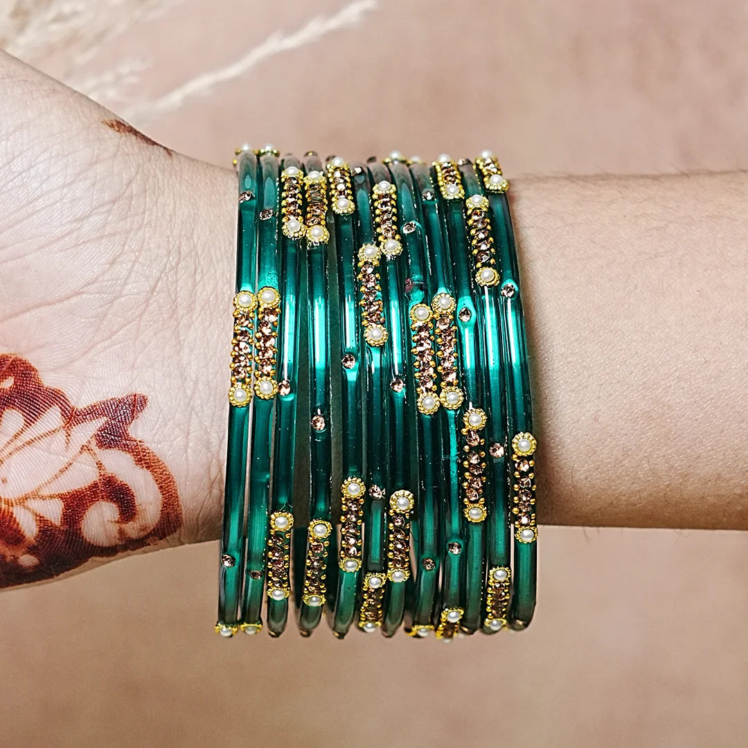 Premium Glass Bangles for Women | Zircon & Beads Work | Glossy Finish (Pack of 12)