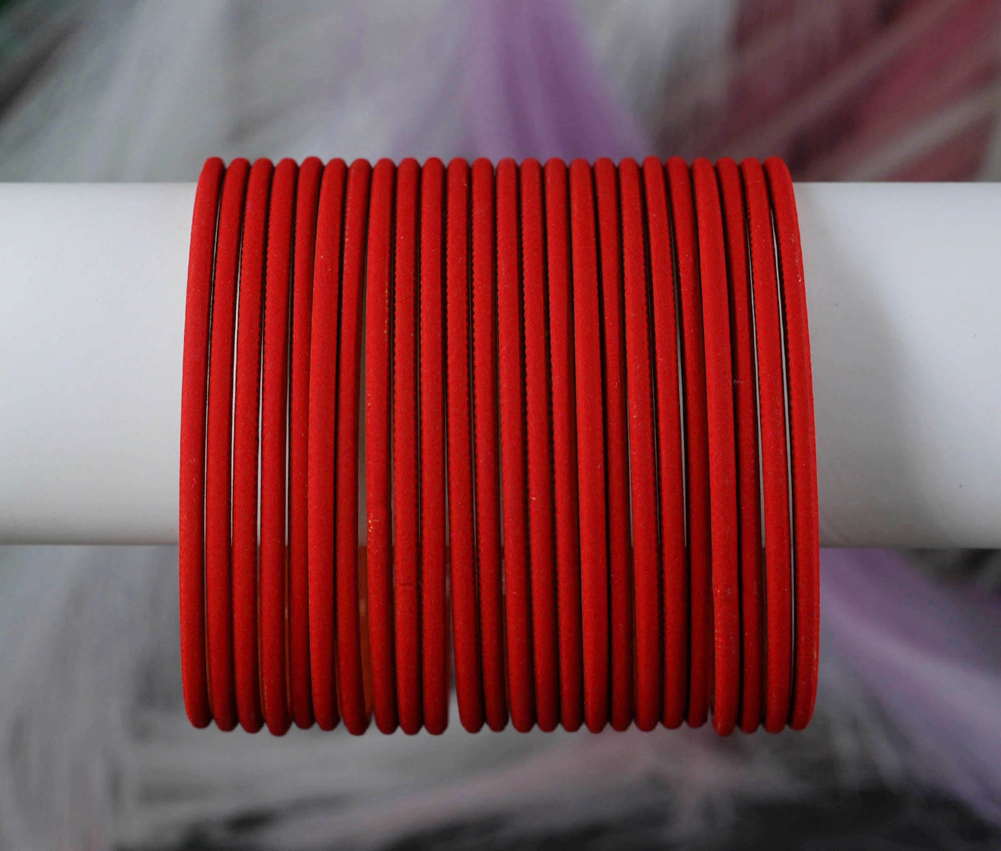 Red Color Plain Matte Metal Bangles for Women & Girls (Pack of 24)