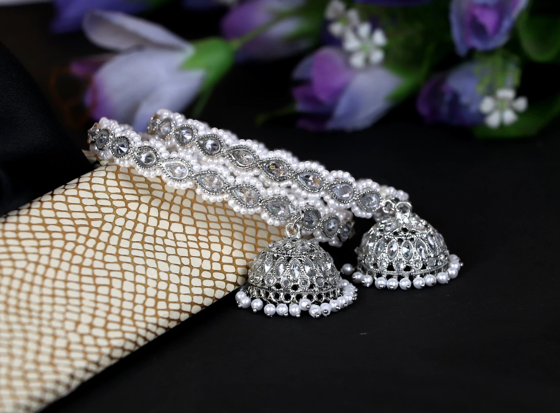 Silver Metal Kada for Women with Kundan Work & Jhumki (Pack Of 2)