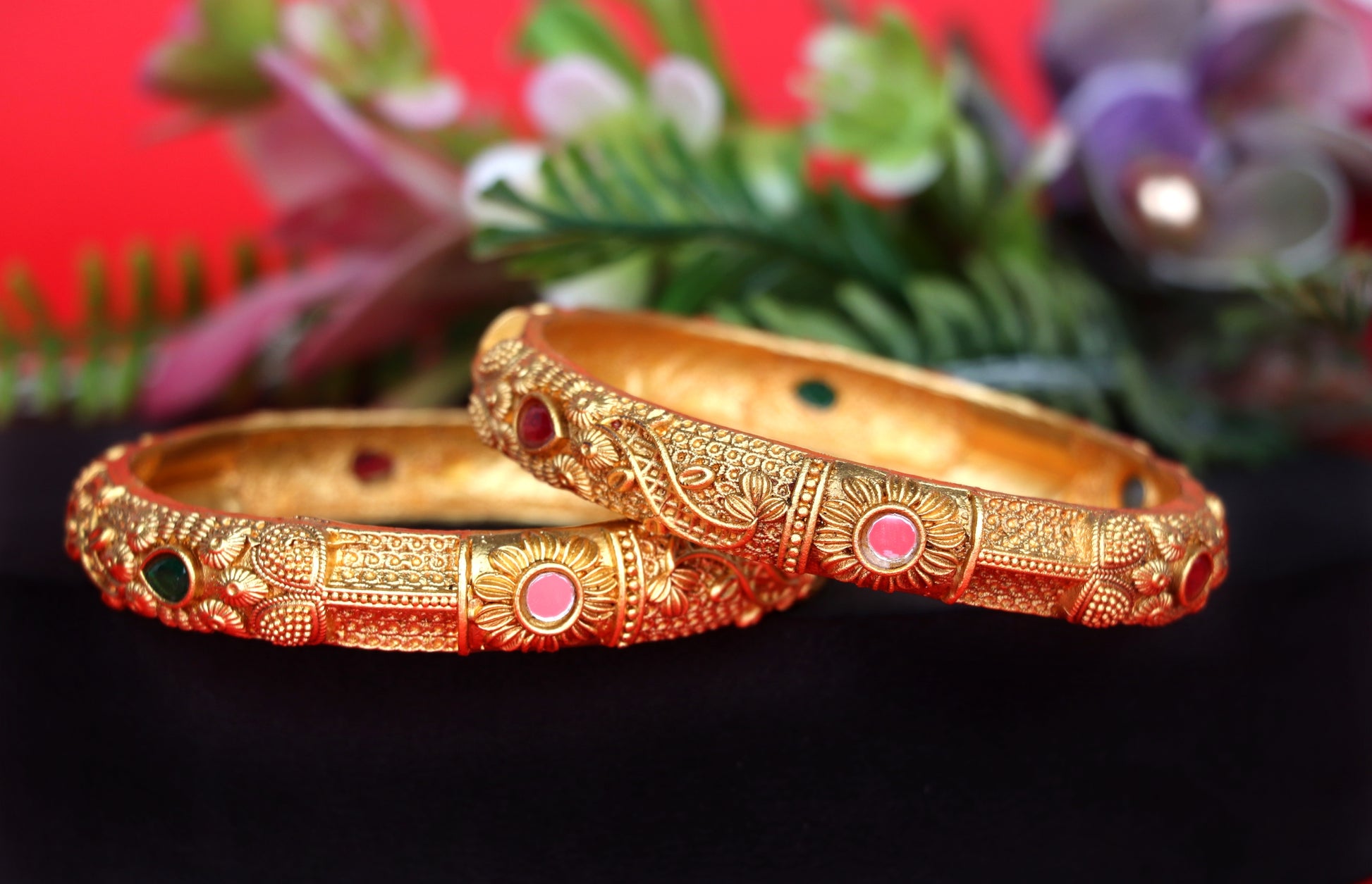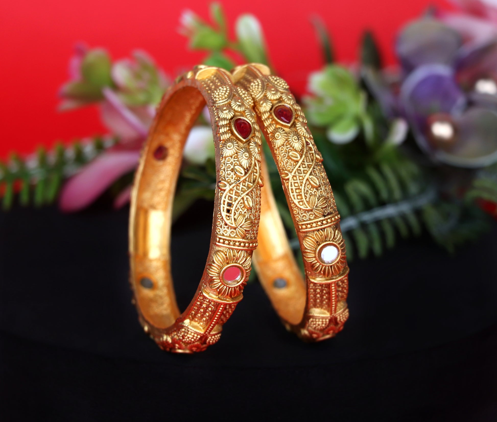 Antique Design Kada Gold-Plated Traditional Bangles for Women & Girls
