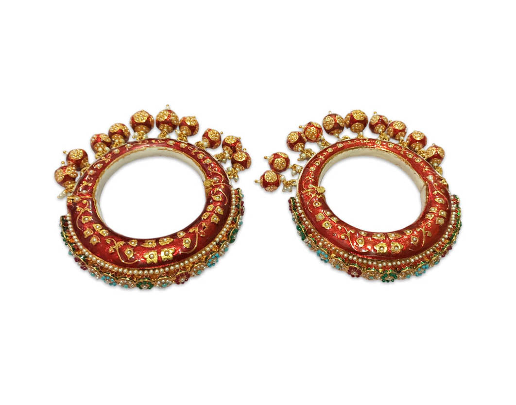 Stylish Red Color Rajwadi Kada for Bridal, Traditional Jewelry Gold-Plated Kada’s for Wedding & Perfect for Brides