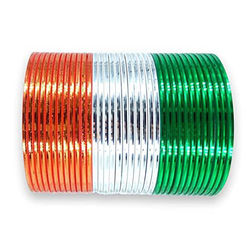 • Package Contents: Pack of 36 Tiranga Color Bangles (Orange, White, Green)