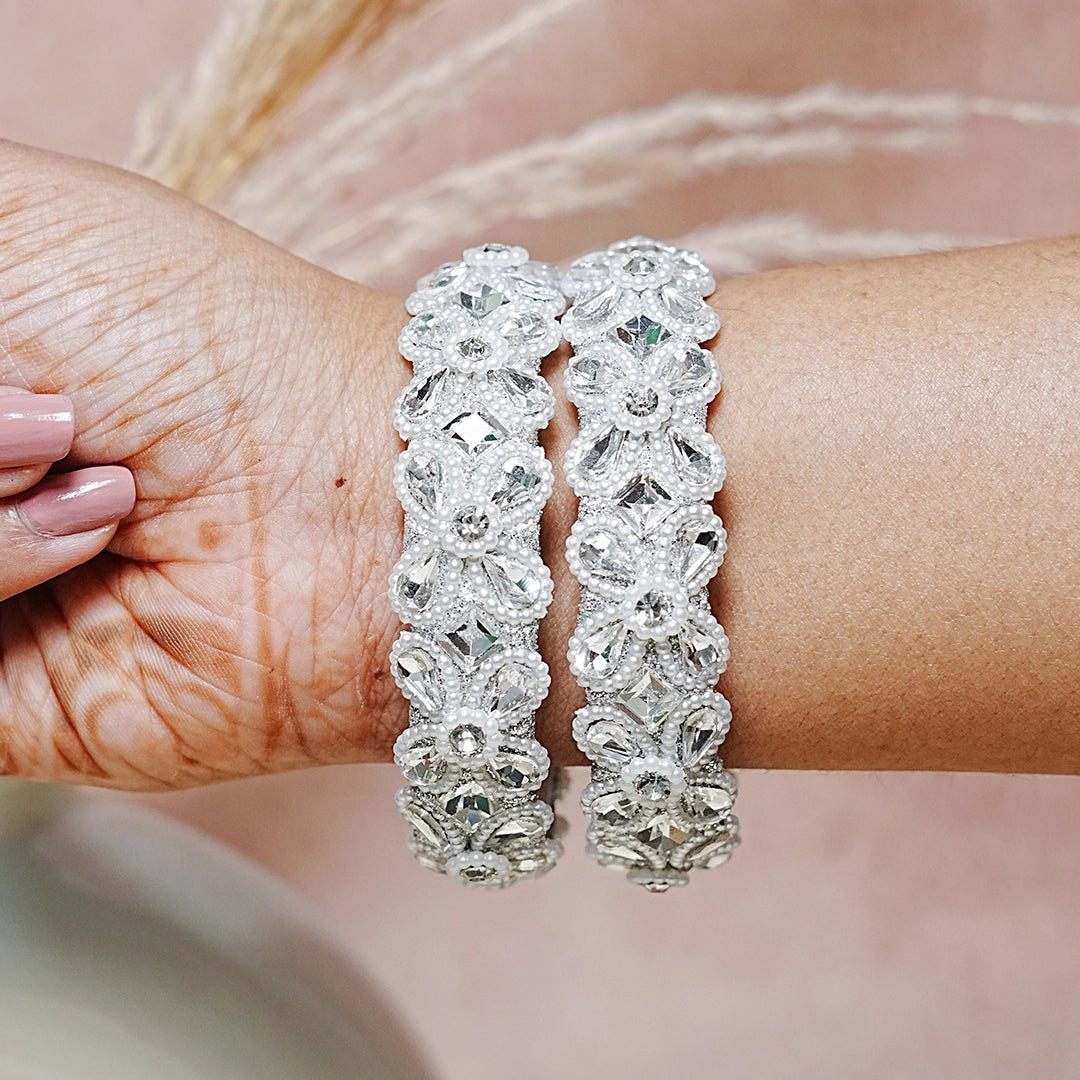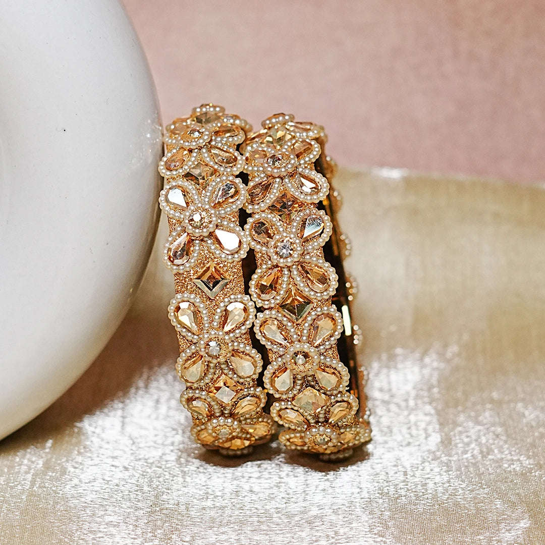 Traditional Glass Kada Intricate Kundan Stone & Pearl Work for Women & Girls (Pack of 2)