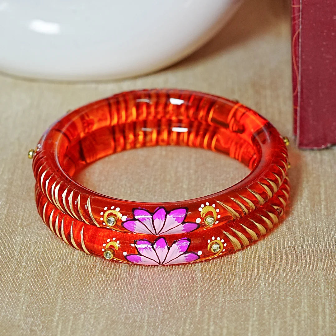 Handcrafted Lotus Printed Pattern Glass Kada for Women (Pack of 2)
