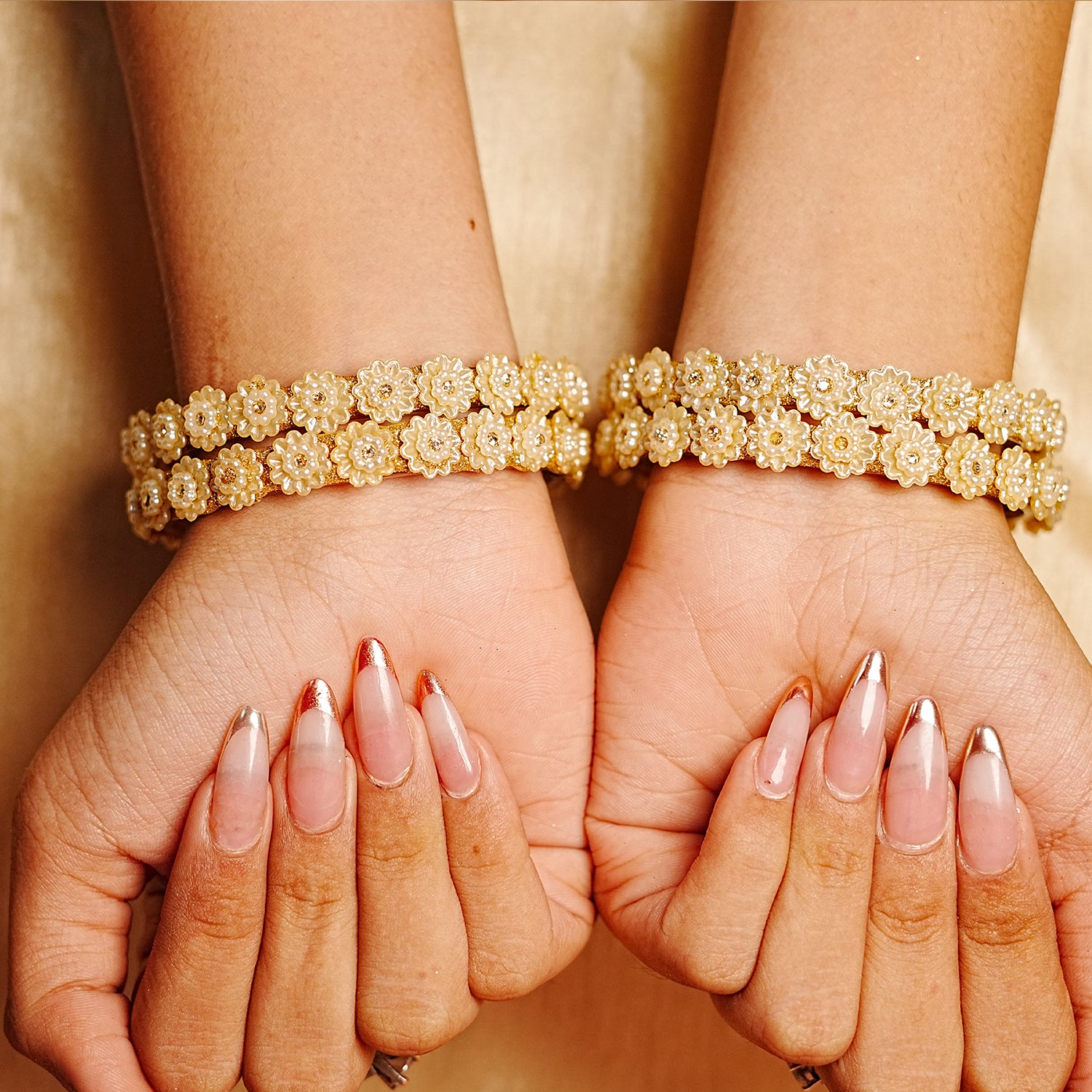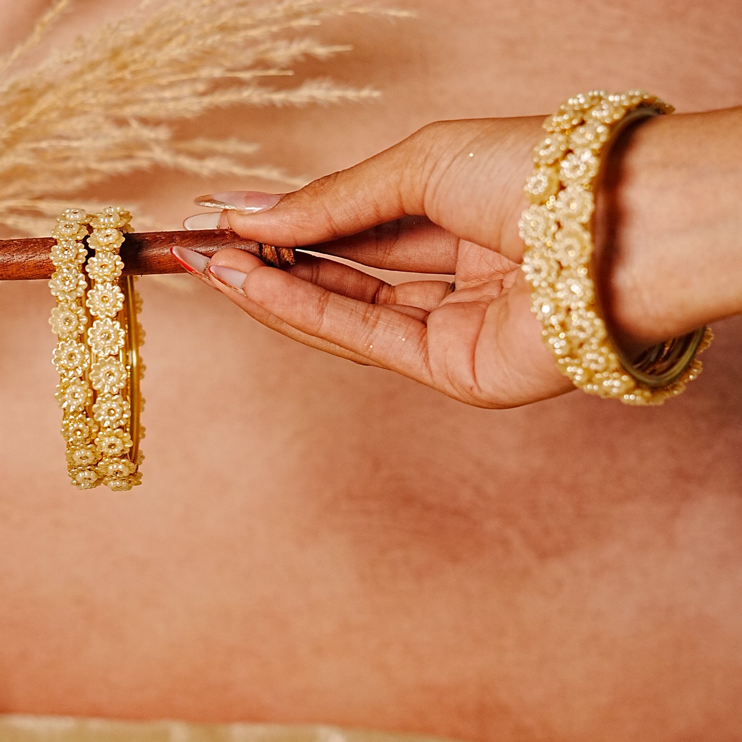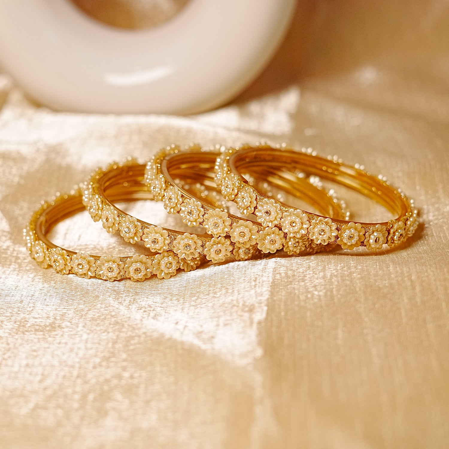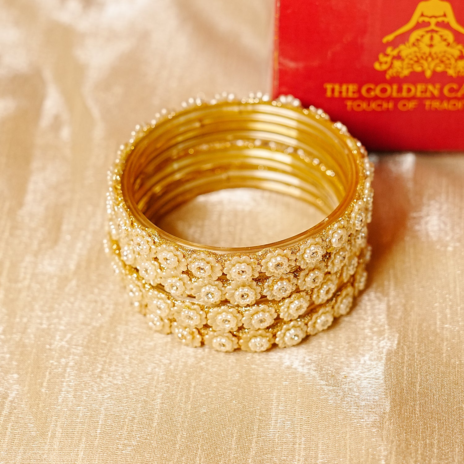 Traditional 'HotStar' Flower Design Glass Kada for Women & Girls (Pack of 4 kada)
