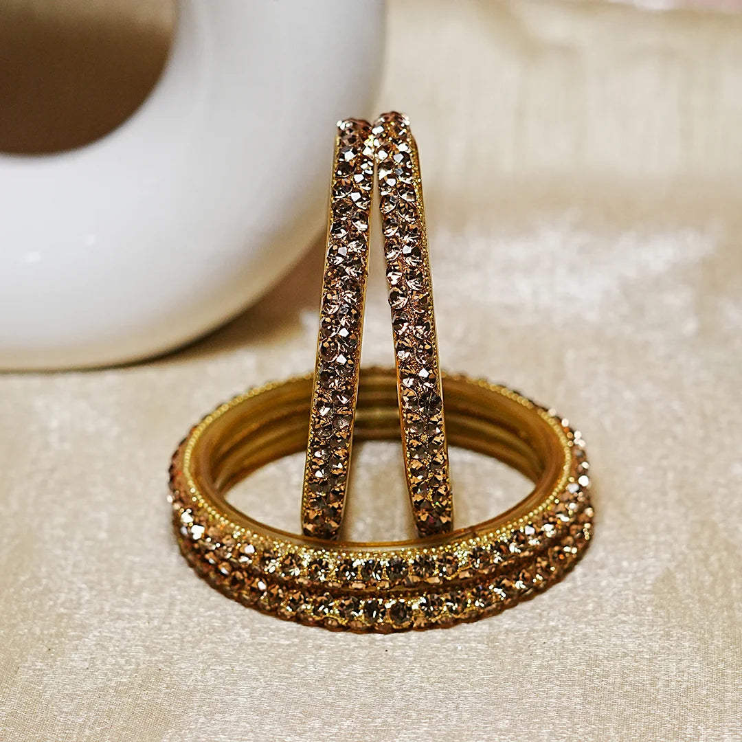Traditional Indian Glass Kada Bangles Set with Beads Studded for Women & Girls (Pack of 4)