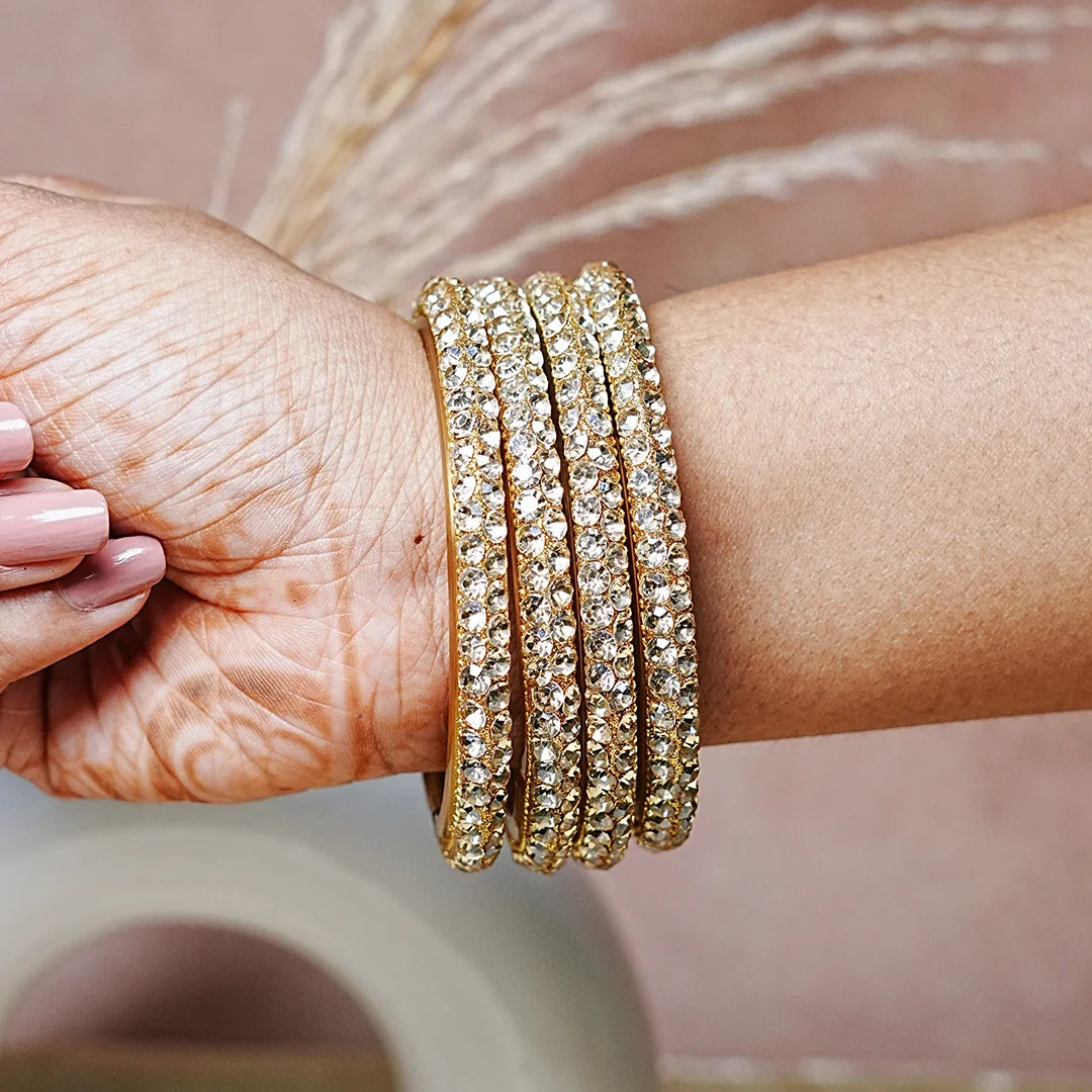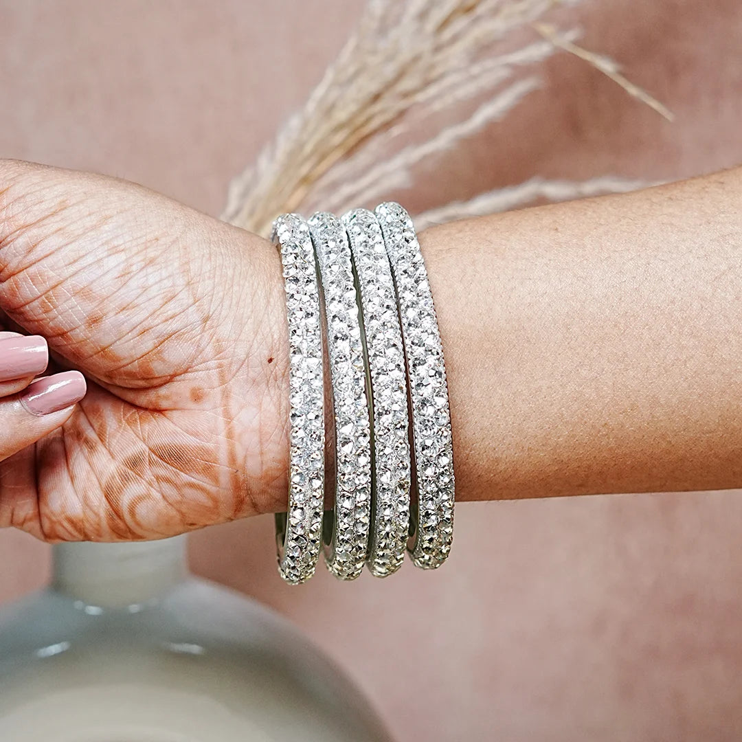 Pack of 4 Bangles: Comes as a set of 4 glass kadas, perfect for stacking or pairing with other bangles for a stylish layered look.