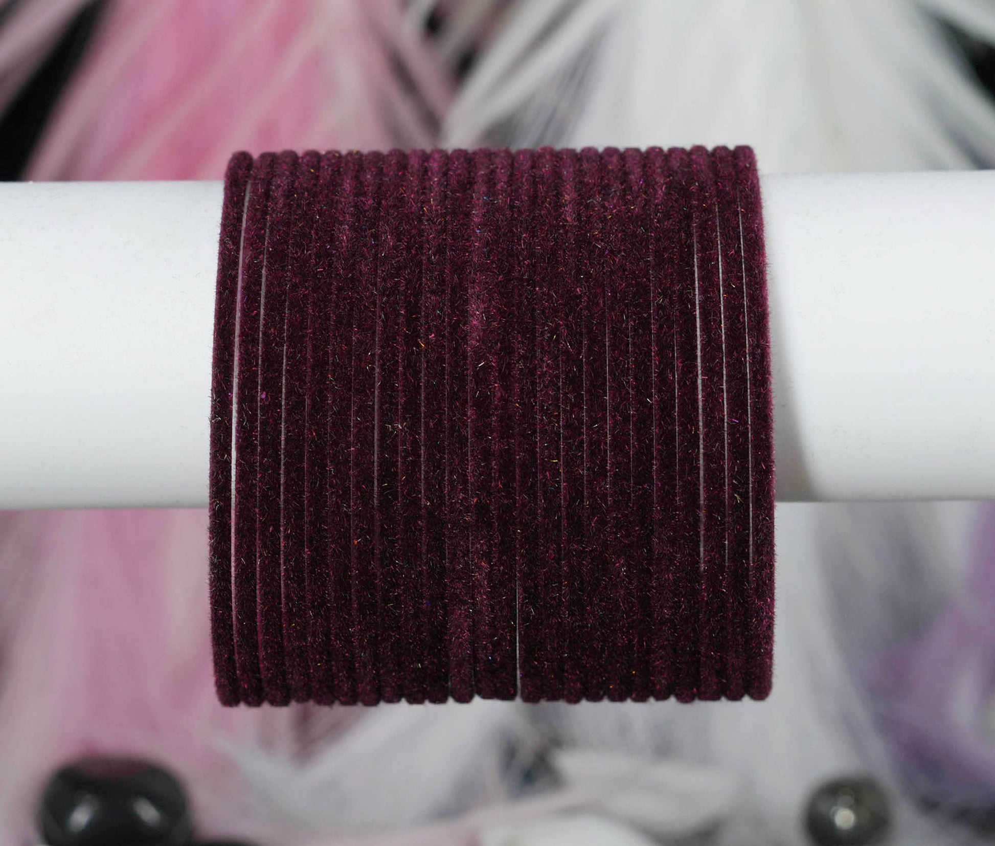 Wine Velvet Metal Bangles for Women & Girls (Pack of 24)