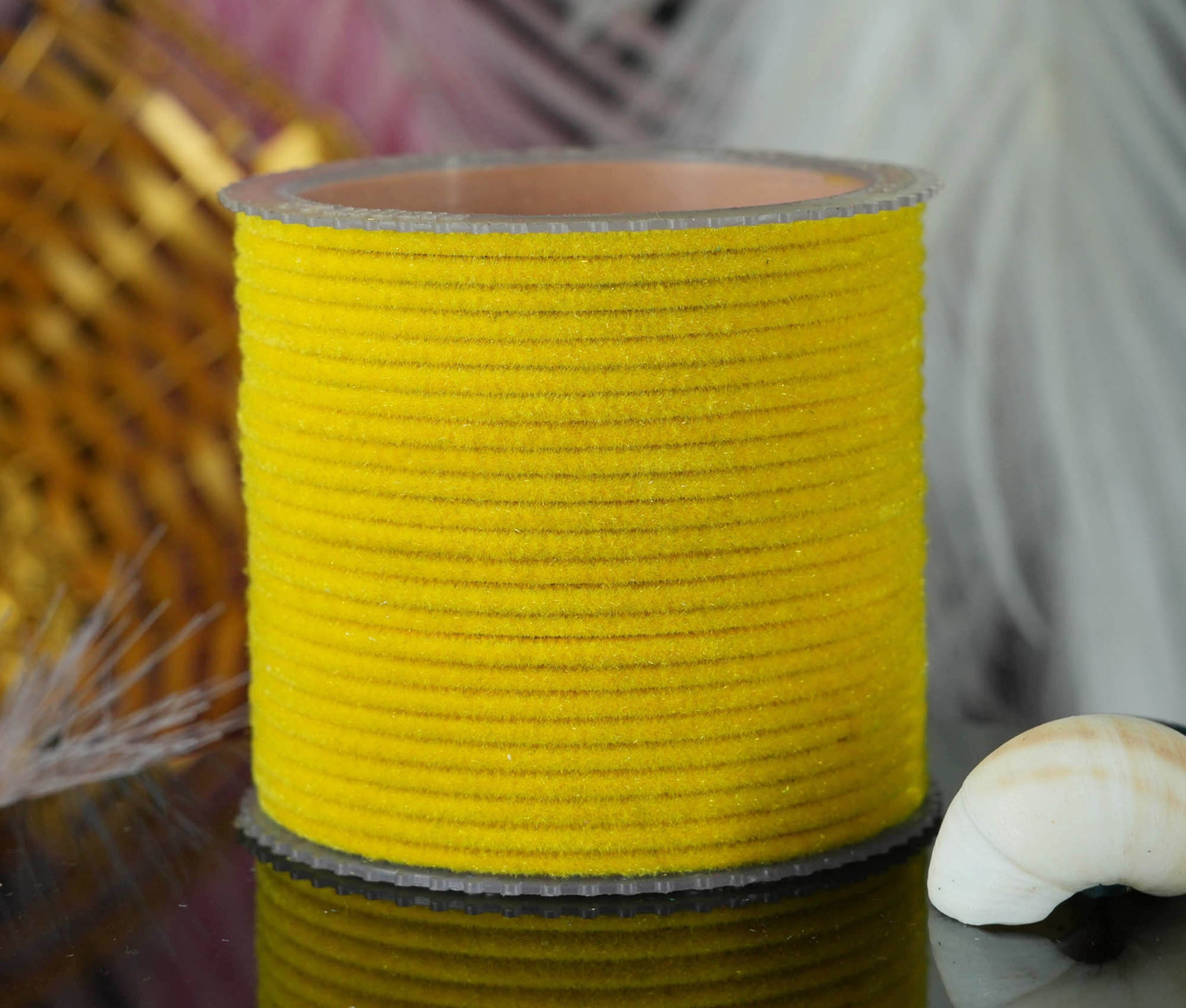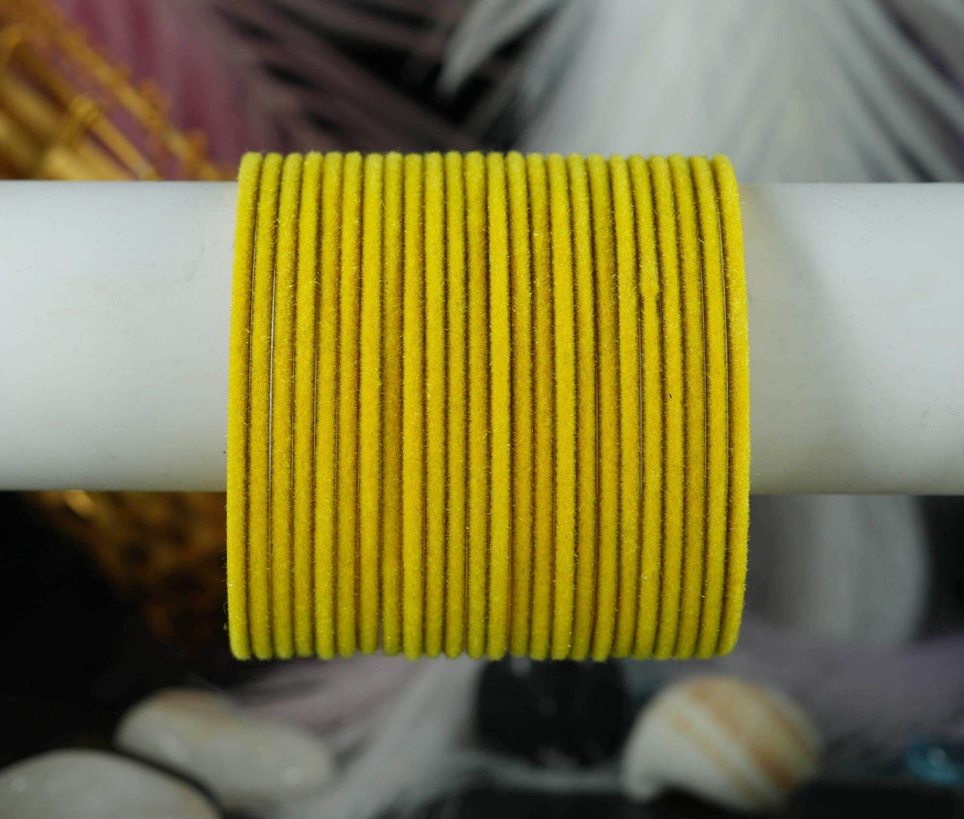 Yellow Color Velvet Metal Bangles for Women & Girls (Pack of 24)