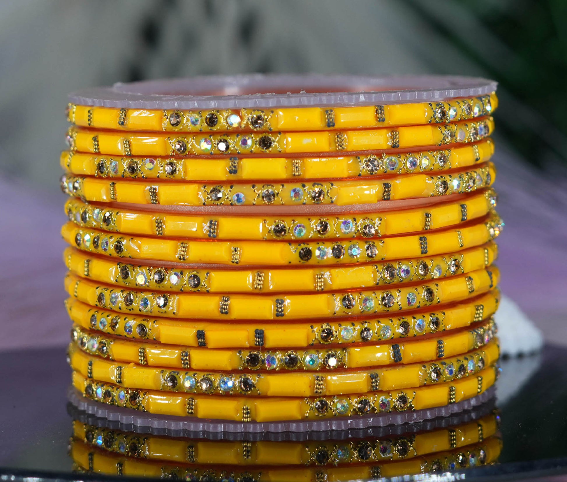 Add a touch of elegance and tradition to your jewelry collection with these Zircon Gemstone Studded Glass Bangles. Made from high-quality glass and adorned with shimmering zircon stones, these bangles are a timeless accessory for any woman. Their intricate design and dazzling shine make them ideal for weddings, festivals, parties, or everyday wear.